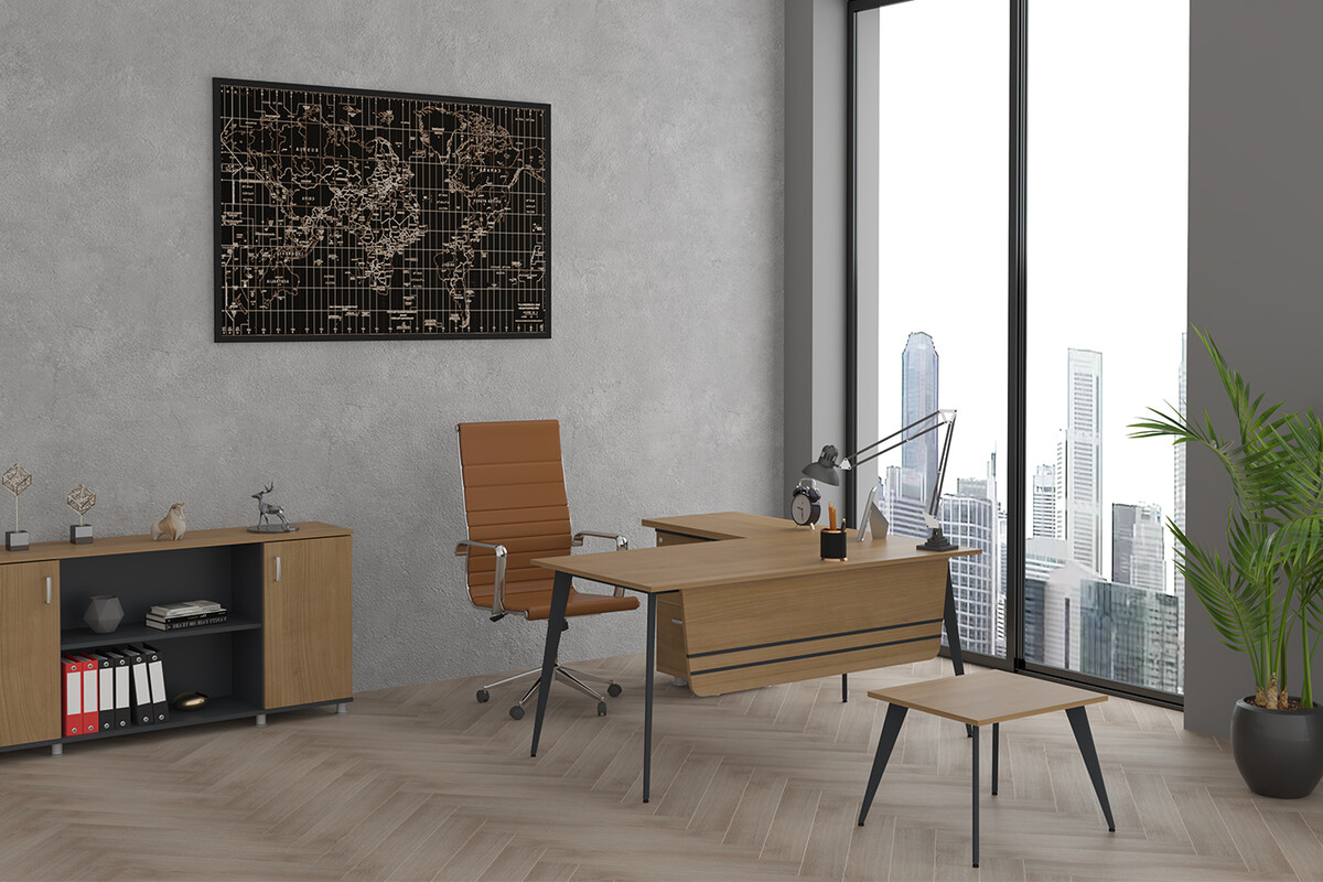 Tasarımındaki yalınlık ve detaylardaki özen, mekanınıza modern bir derinlik ve estetik bir çekicilik katar. Bu ofis mobilyası takımı ile çalışma alanınızda hem profesyonel hem de ilham verici, aydınlık ve şık bir atmosfer oluşturabilirsiniz.