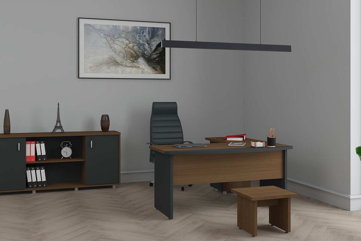 Employe Personel Takımı, ofisinize modern ve dinamik bir estetik katmak üzere tasarlanmıştır. Masanın net çizgileri ve dolabın minimalist duruşu, çalışma alanınıza profesyonel ve düzenli bir görünüm kazandırır. Bu masa takımı, sadece işlevsel bir mobilya olmanın ötesinde, ofisinizin genel dekorasyonuyla mükemmel bir uyum sağlayarak çağdaş bir atmosfer oluşturur. Malzeme ve renk uyumu, ofisinizde görsel bir bütünlük yaratarak çalışanlar ve ziyaretçiler üzerinde olumlu bir izlenim bırakır. Bu personel takımı ile hem estetik hem de ilham verici bir çalışma ortamı tasarlayabilirsiniz.