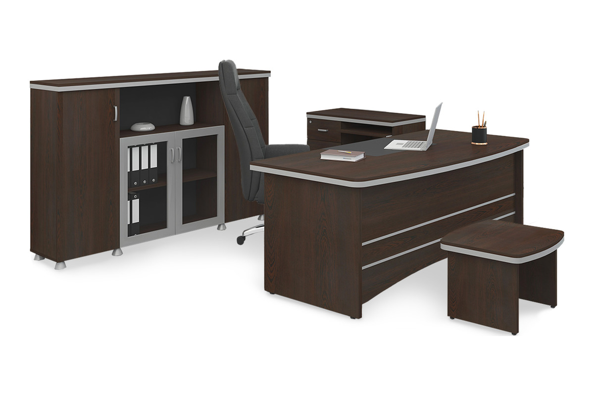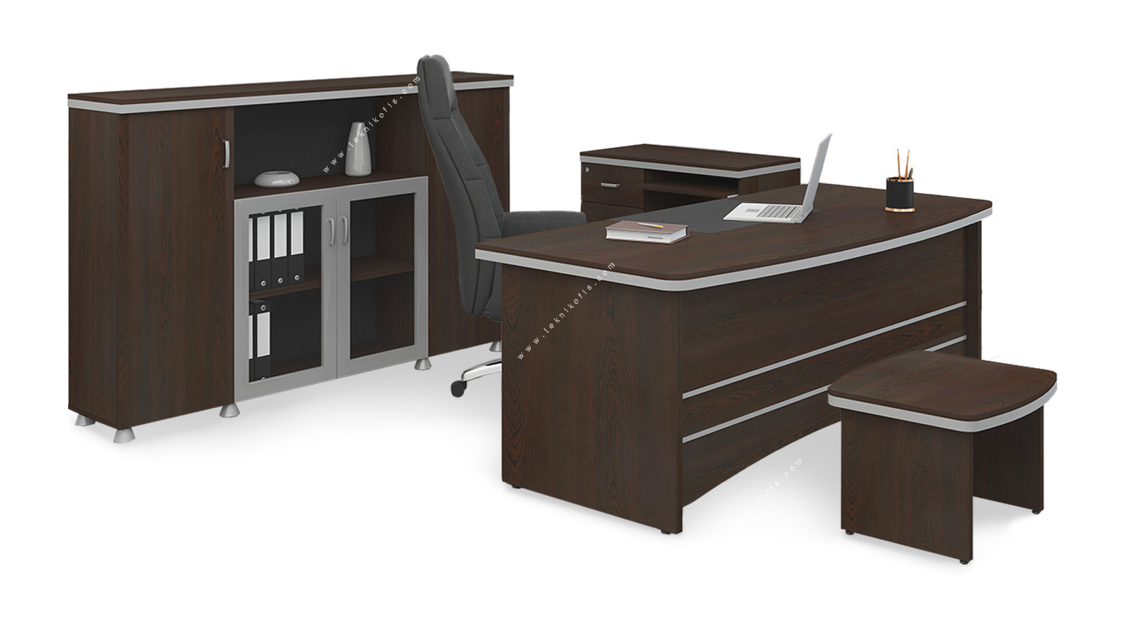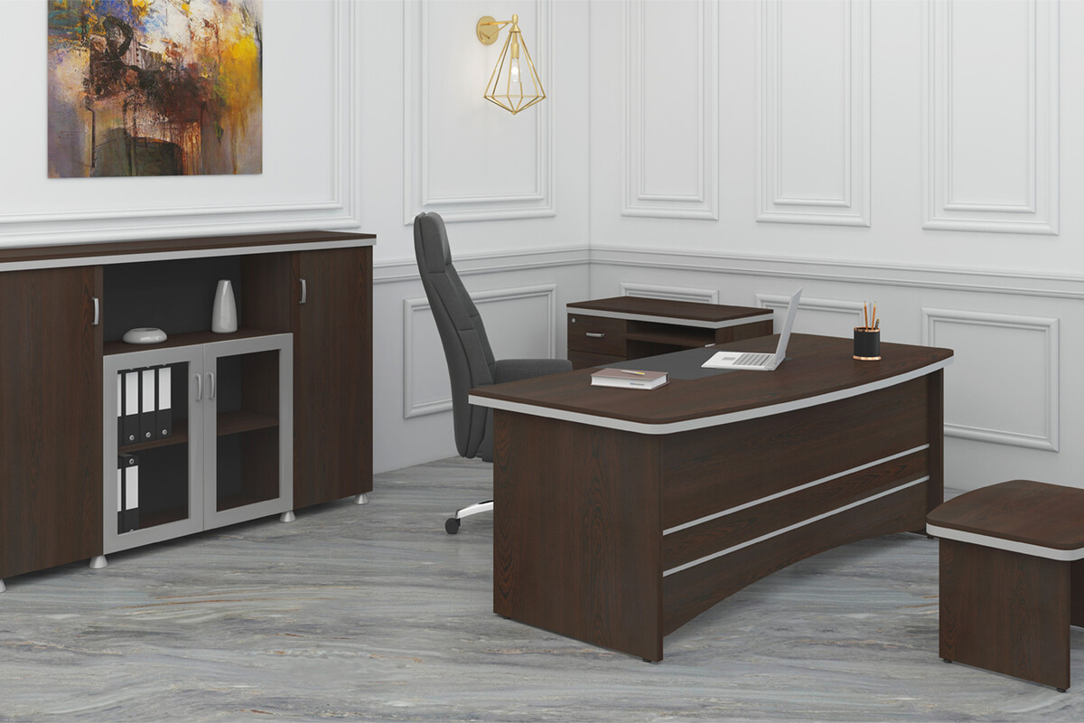 Firak Ahşap Müdür Takımı, müdür ofisleri için özel olarak tasarlanmış, klasik çizgileri modern dokunuşlarla harmanlayan kapsamlı bir mobilya setidir. Takımın ana parçaları, zarif bir masa, geniş depolama alanı sunan bir dolap, pratik bir etajer ve şık bir sehpadan oluşur. Klasik ve şık çizgileri, her türlü ofis dekorasyonuyla mükemmel bir uyum sağlayarak, mekanın profesyonel imajını güçlendirir.