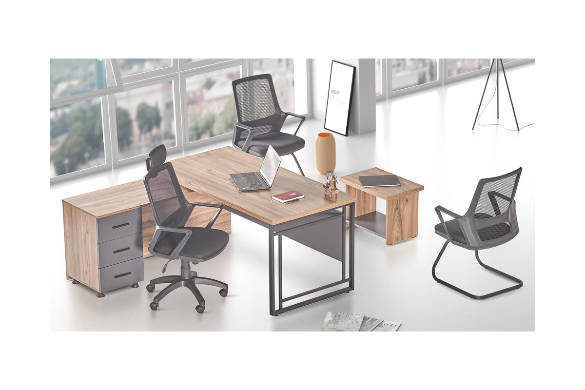 Kong Etajerli Müdür Takımı, modern ofis tasarımını fonksiyonel kullanım ile birleştirerek yönetici odalarına prestijli bir görünüm kazandırır. Melamin malzemeden üretilen etajerli masa, dolap ve sehpa dayanıklı yapısı sayesinde uzun ömürlü kullanım sunar. Geniş depolama alanları düzenli bir çalışma ortamı oluştururken şık detaylarıyla ofis dekorasyonunu tamamlar. Yönetici takımı arayanlar için hem estetik hem de pratik çözümler sunan Kong serisi, profesyonel ofis alanları için ideal bir tercihtir.