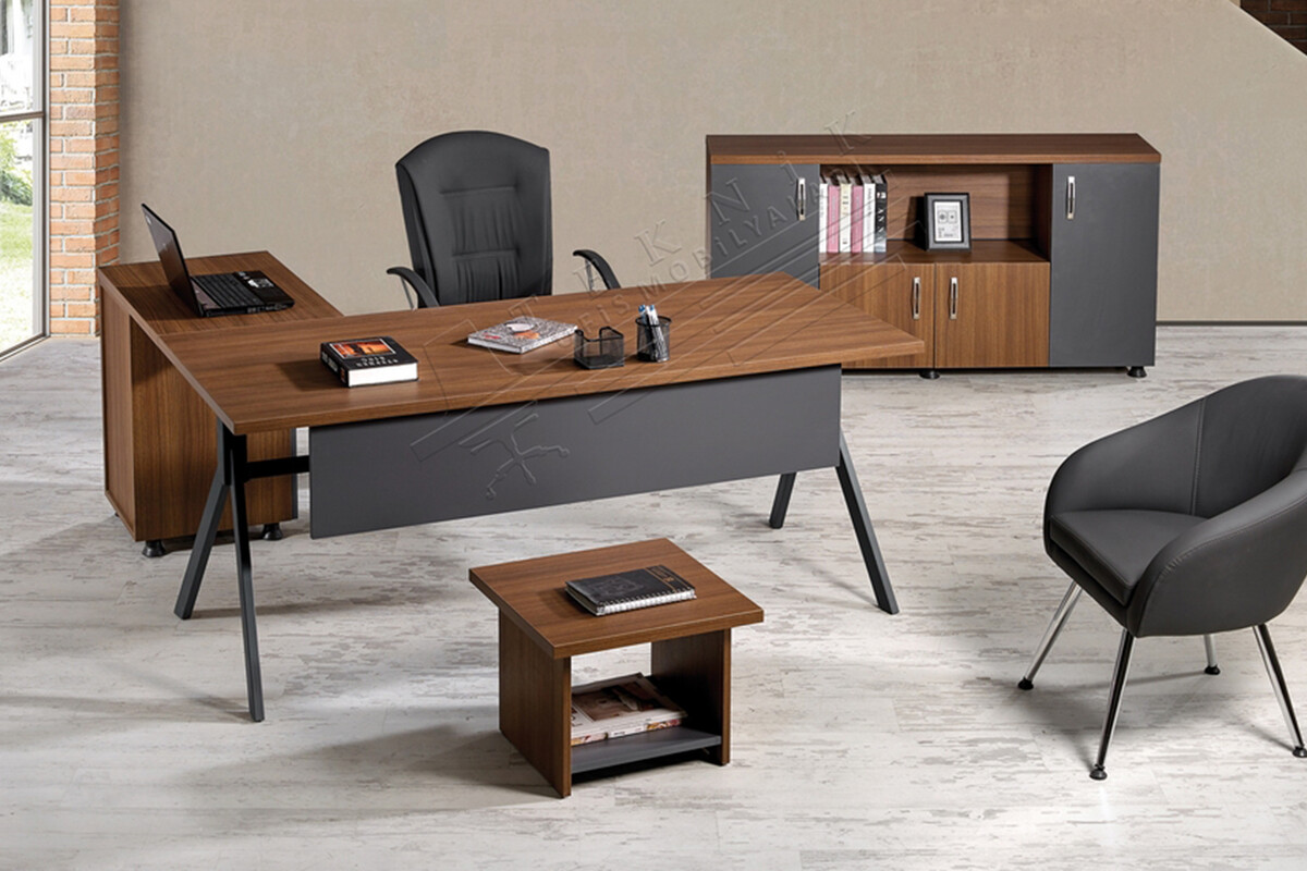 Bu yönetici takımı, takım halindeki dolap ve sehpa gibi tamamlayıcı ürünlerle birlikte eksiksiz bir çözüm sunar. Kaliteli malzeme yapısıyla uzun ömürlü kullanım vadeden müdür takımı, ofisinizin estetiğini güçlendirirken, günlük iş akışınızı da destekler.