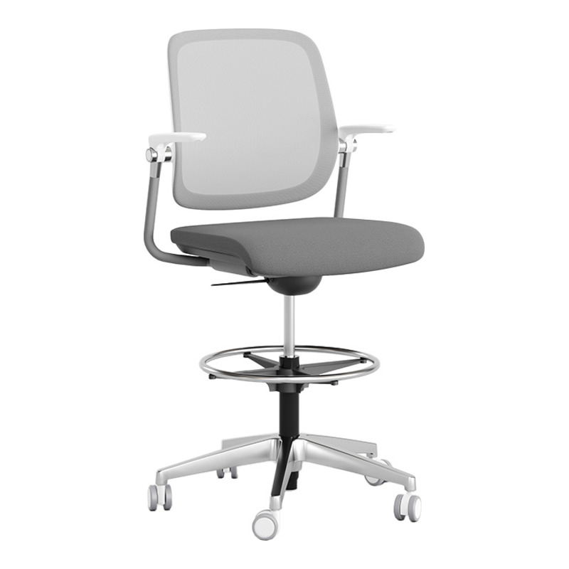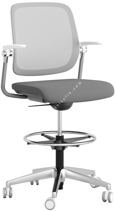 Junmo Beyaz Kolçaklı Bar Taburesi, ayakta veya yüksek masada çalışma, ortak sosyal alanlar veya laboratuvarlar gibi dinamik ve yüksek oturum gerektiren ortamlar için tasarlanmış ergonomik bir sandalyedir. Koltuğun en belirgin özelliği, terlemeyi önleyen ve sürekli hava akışı sağlayan açık file sırtlığıdır. Bu yüksek çalışma koltuğu, şık, minimalist tasarımı, ergonomik file yapısı ve yüksek seviye fonksiyonelliğiyle, modern ofislerin yüksek çalışma alanları için ideal bir çözümdür.