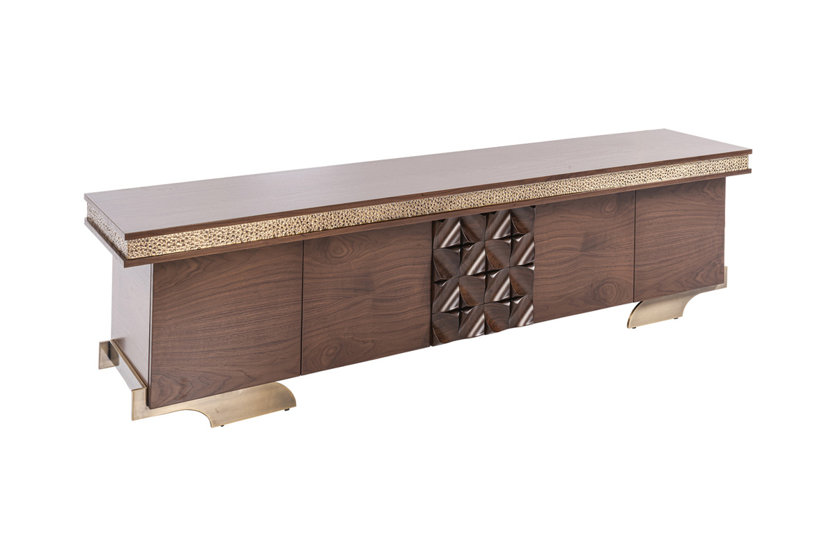 Vivanta TV Ünitesi, klasik işlemeli tasarımı ve geniş yüzeyiyle makam odalarına zarif bir medya çözümü sunar. Dekoratif ve fonksiyonel bir parça olarak öne çıkar.