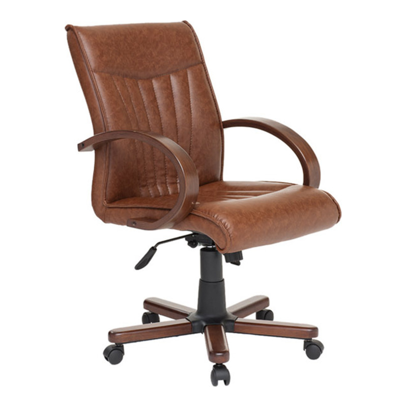 Ahşap toplantı ve çalışma koltuklarının yapısında kullanılan teknik donanımları sayesinde ağırlık ve darbelere karşı dayanıklıdır. İçeriğinde sünger olarak poliüretan dökme kalıp sünger kullanılır ve üzeri suni deri döşemedir. Sırt kısmı düşey yönde dikişlerle estetik görünüm kazandırılmış ve omurga kıvrımlarıyla uyumlu ergonomiktir. Ahşap çalışma koltuğu olarak kullanılırken uzun süreli oturmalardan kaynaklanabilecek ağrıları önler. Kolçakları ve ayakları ahşap olup kolları oval şekildedir. Oturma fontunun altında koltuğun yüksekliğini çalışma masasına uygun ayarlamaya ve yaylanmasını ayarlamaya istenilen pozisyonda sabitlemeye olanak tanır.