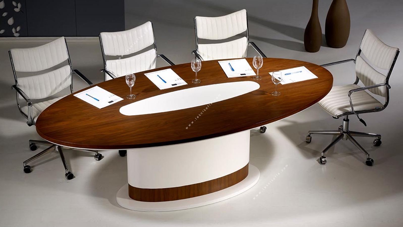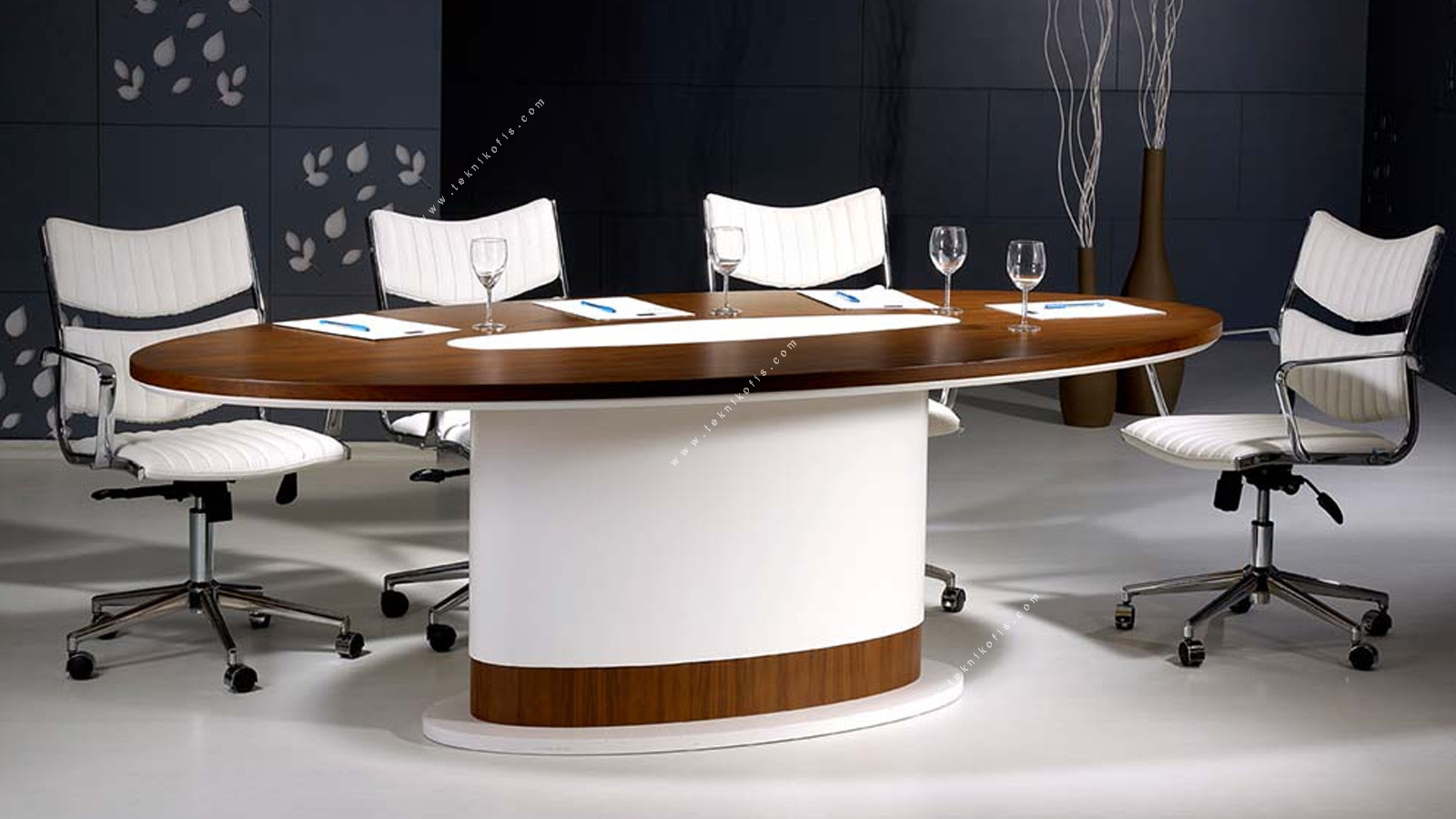 Argent Toplantı Masası, modern ve sade çizgileriyle ofis toplantı odalarında şık ve işlevsel bir alan oluşturur. Lake ve ceviz kaplamanın uyumlu bileşimi, ofise ferah ve aydınlık bir hava kazandırır. Masanın oval yüzeyi, katılımcılar arasında rahat iletişim ve işbirliği ortamı oluşturur.