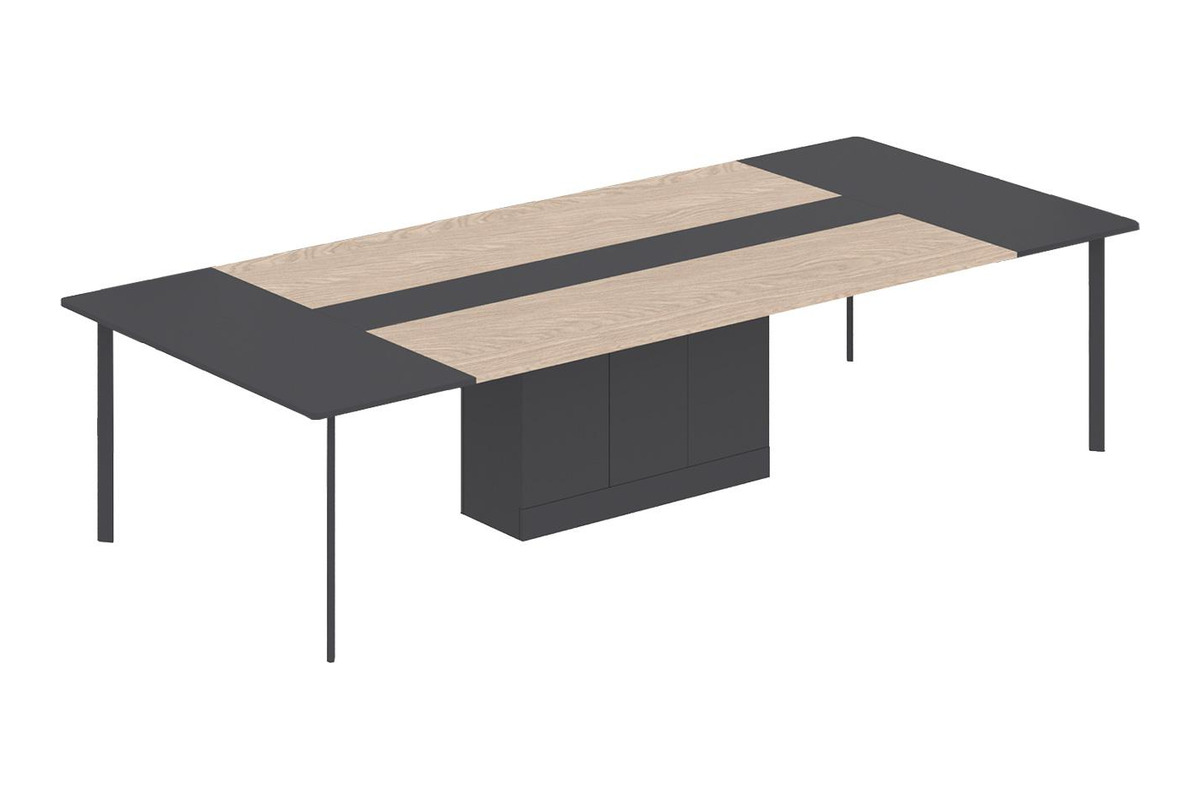 Masanın antrasit rengi ve ahşap detayların uyumu, mekana sofistike bir atmosfer katar. Sağlam metal ayaklar, masaya dayanıklılık ve modern bir duruş kazandırır. Yüksek kaliteli malzemelerle üretilen on kişilik toplantı masası, uzun ömürlü kullanım vadederek ofisinizin teknolojik ve estetik beklentilerini karşılar.