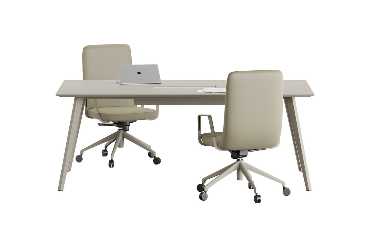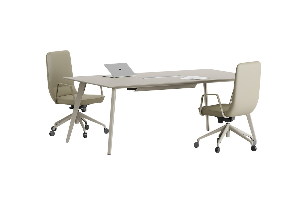 Ploi Toplantı Masası'nın en dikkat çekici özelliği, zarif ve eğimli metal ayak tasarımıdır. Bu özel ayaklar, masaya hafif ve çağdaş bir görünüm kazandırırken, aynı zamanda üst düzey sağlamlık ve dayanıklılık sunar. Geniş ve kullanışlı tablası, çok sayıda katılımcının rahatça yerleşmesini ve sunumların kolayca takip edilmesini sağlar.