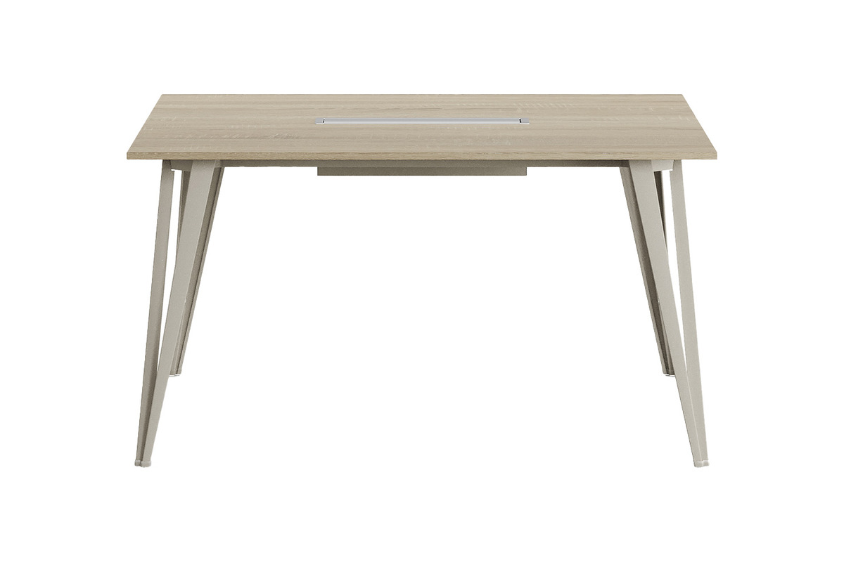 Zarif ve sağlam metal ayaklar, masaya modern bir estetik ve dayanıklılık katar. Kompakt boyutları sayesinde küçük ve orta ölçekli toplantı odaları veya dinlenme alanları için mükemmel bir seçenektir. Üzerinde yer alan entegre kablo kanalı, teknolojik cihazların düzenli kullanımına olanak tanır.