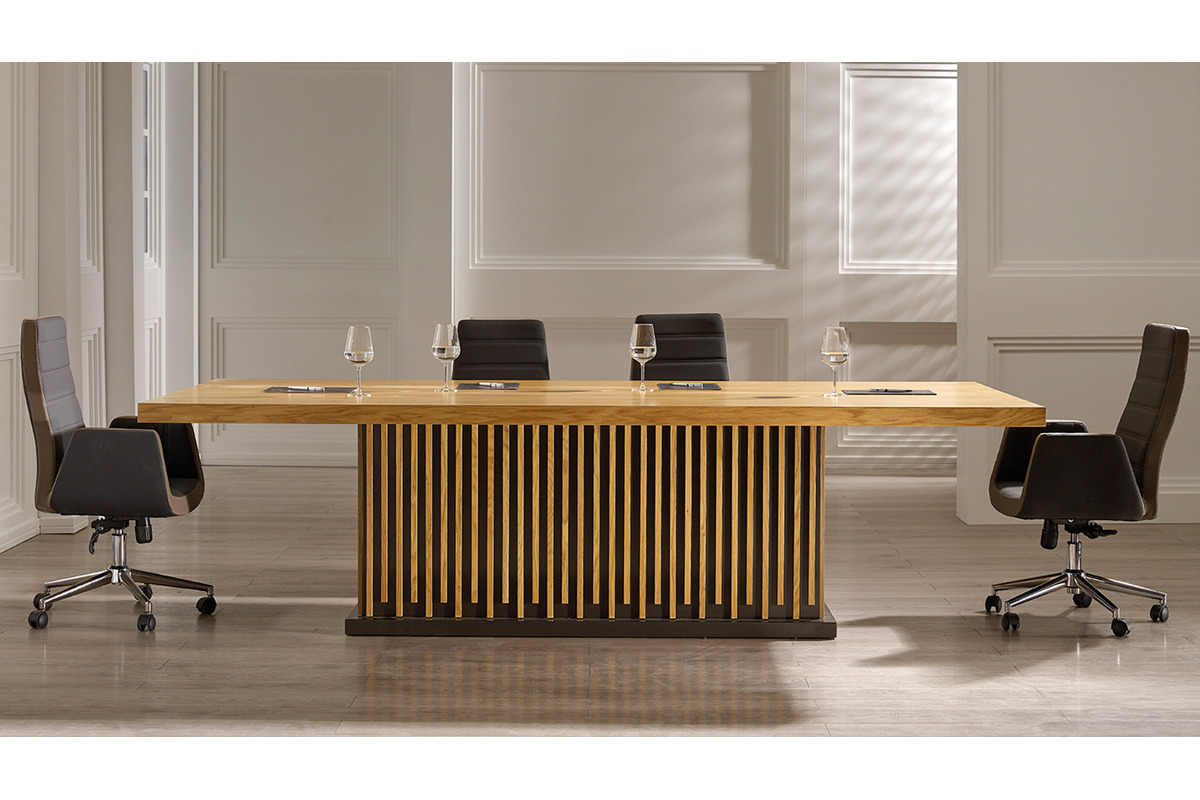 Zesa Meşe Ahşap Makam Toplantı Masası, yüksek kaliteli meşe ahşabın doğal sıcaklığını ve modern tasarımın zarafetini bir araya getiriyor. Geniş ve pürüzsüz çalışma yüzeyi, katılımcıların rahatça not almasını ve etkileşimde bulunmasını sağlar. Sağlam yapısı ve detaylardaki işçiliğiyle uzun yıllar boyunca ofisinizin odak noktası olmaya adaydır.