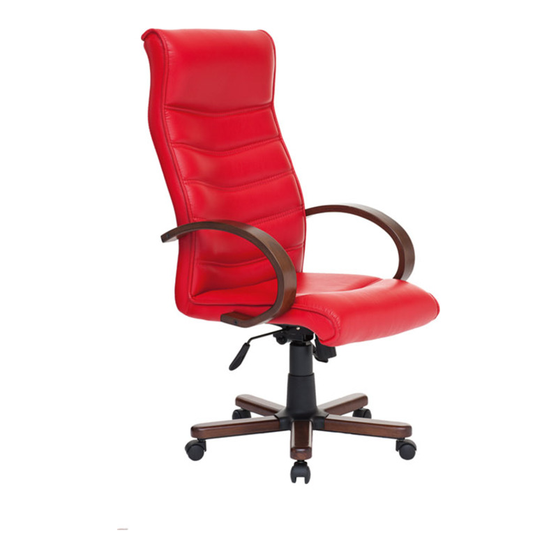 Ahşap yönetici koltuğu, sünger olarak dökme kalıp sünger kullanılıp üzeri suni deri ila döşenerek imal edilmiştir. Baş ve boyunu destekleyen yumuşak başlığa sahiptir. Sırt kısmı yatay yönde dilimli omurga ve bel destekli olarak tasarlanmıştır. Ahşap yönetici koltuğunun oturma fontu son derece sağlam ve konforludur. Kolçakları oval tasarımlı ve ahşap malzemeden imal edilmiştir. Çift kollu mekanizması oturma fontunun altında elinizin uzanabileceği noktada yer alır. Bu mekanizma koltuğun yüksekliğini ve yaylanmasını ayarlamayı ve istenilen pozisyonda sabitlenmesini sağlar. Amortisör desteklidir. Ayakları ahşap ve sert plastik kullanılarak imal edilmiş tekerleklere sahiptir. Tekerlekleri zemine zarar vermeyen yapıdadır.