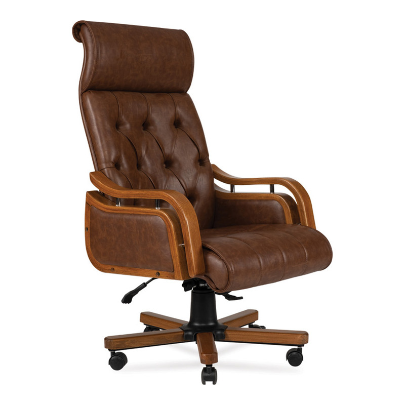 Römis Ahşap Kol Ayak Derili Makam Koltuğu