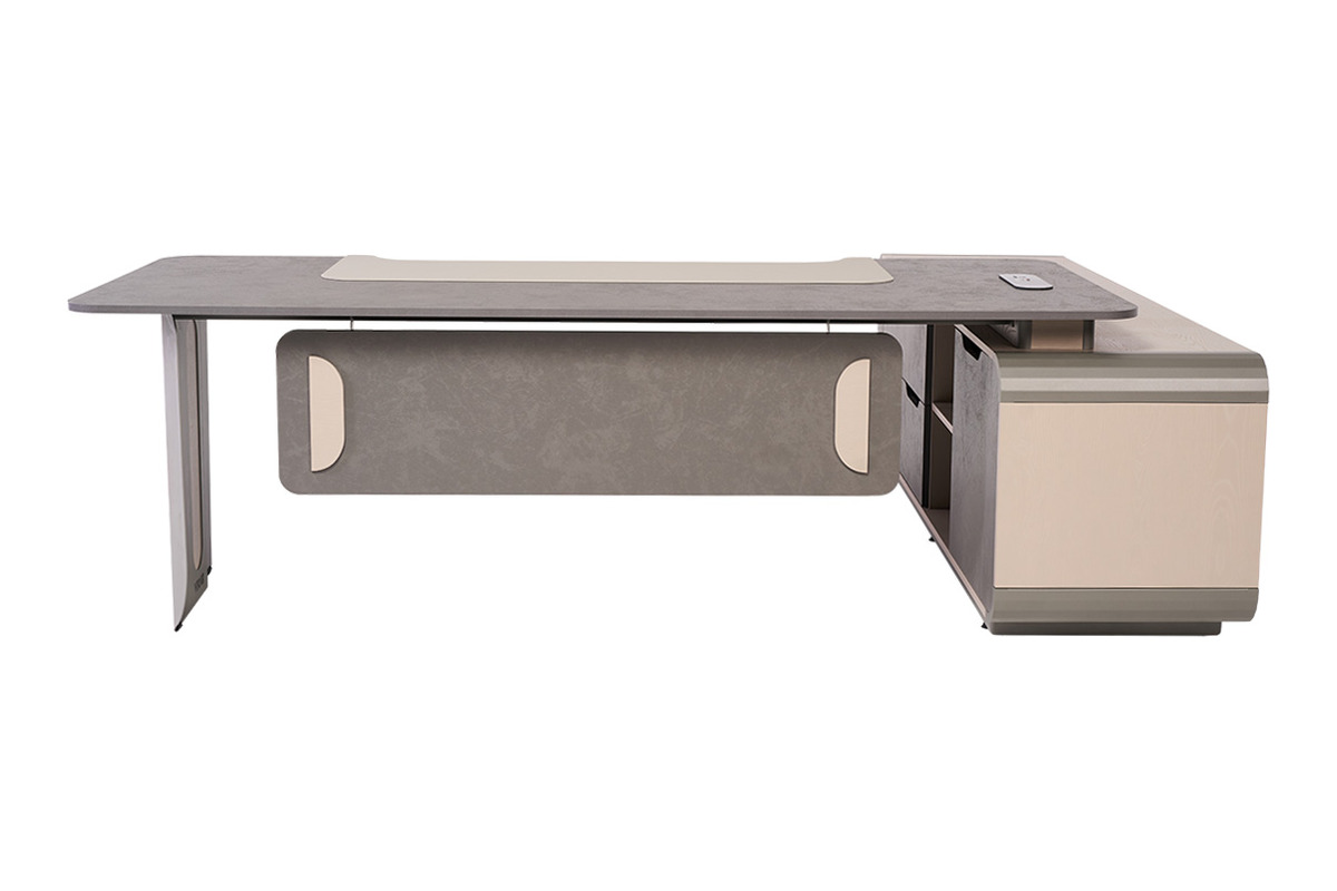 Crystal Etajerli Yönetici Masası, kavisli ve zarif tasarımıyla yönetici ofislerine modern bir kimlik kazandırır. Entegre etajer bölümü sayesinde evrak ve ofis aksesuarlarını düzenli tutmaya yardımcı olurken, akıcı hatları çalışma alanında estetik bir bütünlük sağlar. Hem prestijli hem de fonksiyonel bir yönetici masası arayanlar için ideal bir çözümdür.