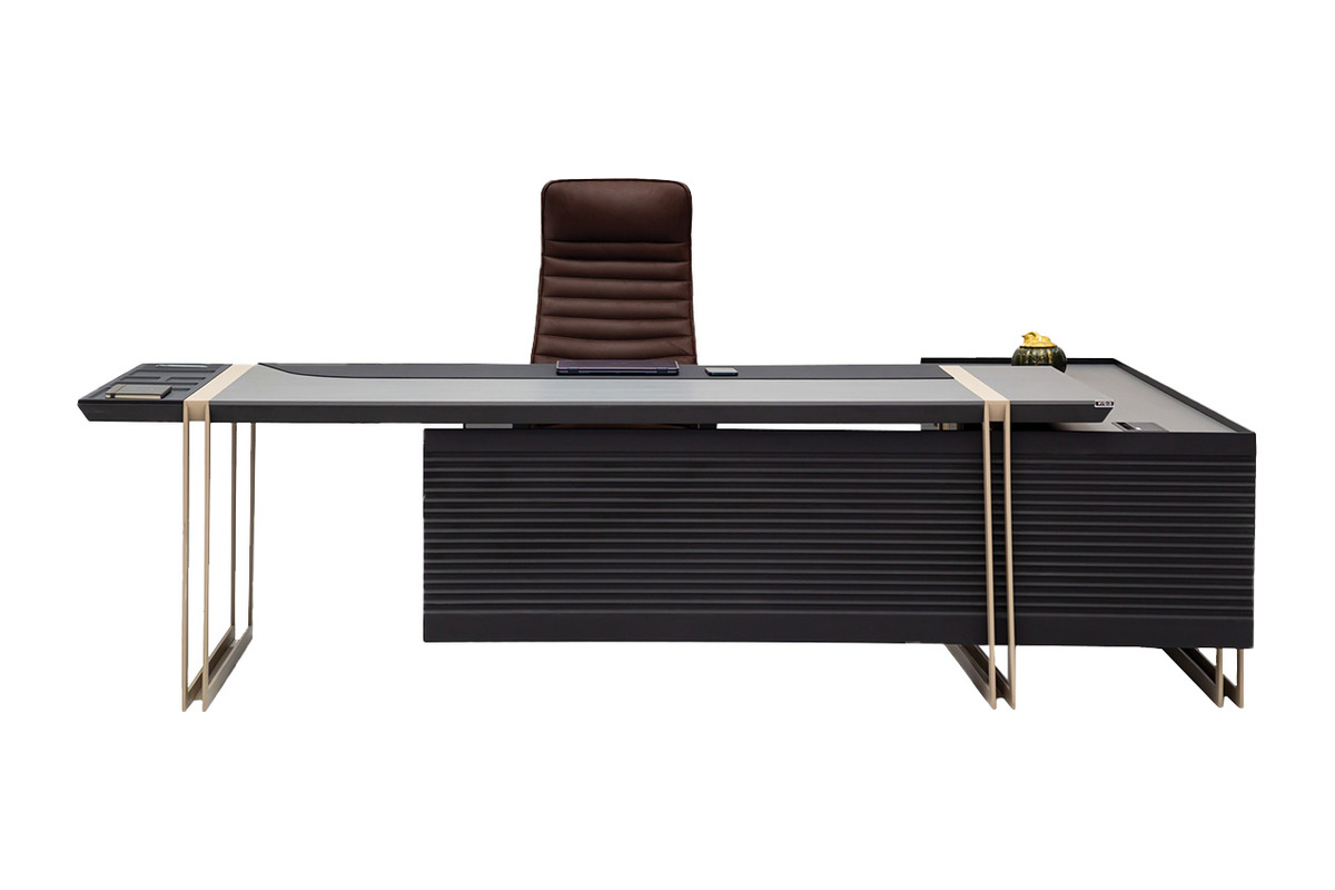Descon Çift Metal Ayaklı Makam Masası, ofisinizdeki yönetici odasına modern bir dokunuş ve etkileyici bir çalışma ortamı kazandırmak üzere tasarlanmıştır. Geniş çalışma yüzeyi, bilgisayar ve evraklar için bol alan sunarken, masanın altında bulunan çift metal ayaklar modern bir estetik ve sağlamlık sağlar. Düz hatları ve sade tasarımı, ofisinizin genel estetiğine kolayca uyum sağlar ve ferah bir atmosfer yaratır. Sağlam yapısı ve kaliteli malzemeleriyle uzun ömürlü bir kullanım vaat eder. Descon modern makam masası, işlevselliği ve estetiği bir araya getirerek, verimli ve konforlu bir çalışma deneyimi sunar.
