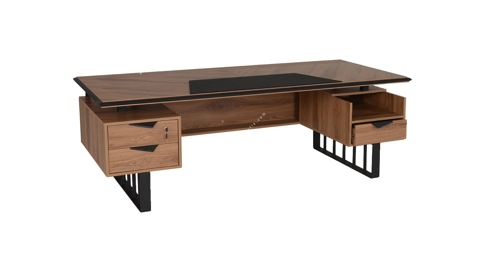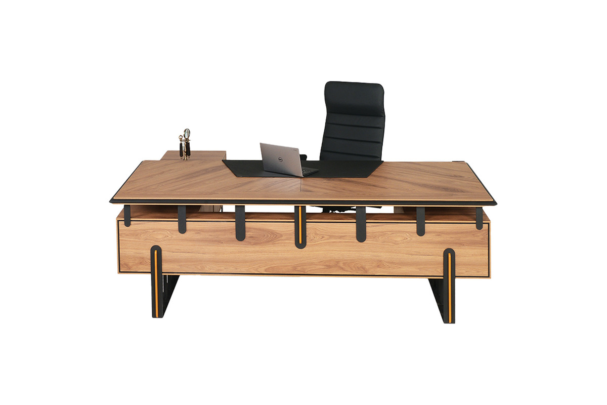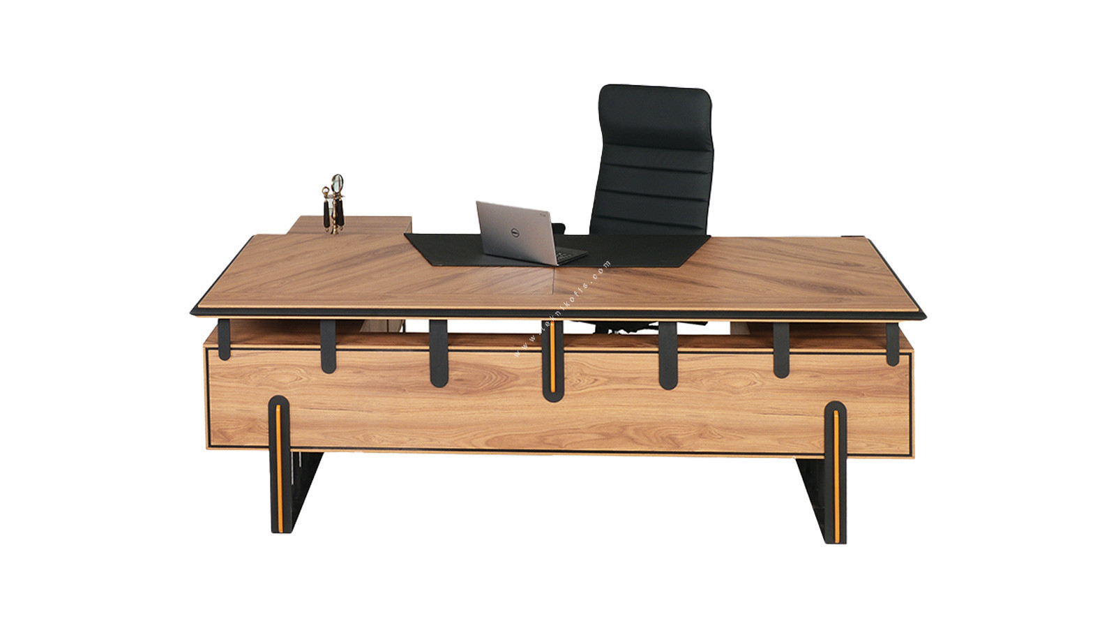 Fante Şık Metal Detaylı Yönetici Masası, ofisinizin merkezinde güçlü bir odak noktası oluşturarak, hem işlevselliği hem de görsel ihtişamı bir araya getirir. Geniş çalışma yüzeyi, modern ve minimalist bir estetik sunarken, masanın altında yer alan ahşap dokulu dolaplar ve çekmeceler düzenli bir çalışma ortamı sağlar. Özellikle dikkat çeken metal detaylar ve çarpıcı ayak tasarımı, masaya endüstriyel bir şıklık katarken, sağlam yapısıyla uzun yıllar boyunca güvenilir bir kullanım vaat eder. Bu ofis masası, yalnızca bir çalışma alanı olmanın ötesinde, kullanıcısının statüsünü ve zevkini yansıtan bir tasarım beyanıdır. Fante, işlevsellikten ödün vermeden, modern bir yönetici odasının tüm ihtiyaçlarını estetik bir dille karşılar.
