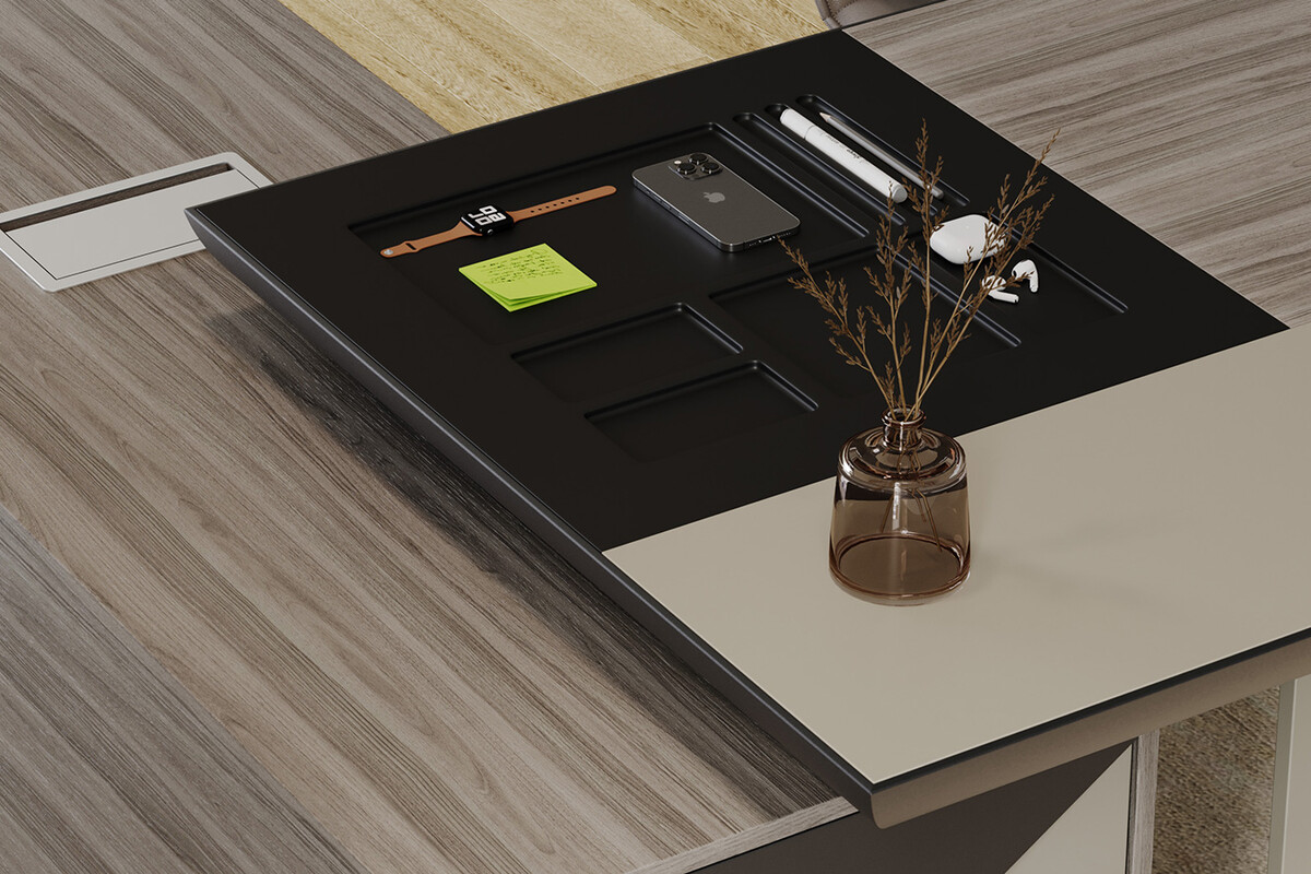Fomen Etajerli Yönetici Masası, modern ve kullanışlı yapıya sahip bir modeldir. Genel olarak kullanım alanı firma ve şirket yöneticilerinin ofis odlarında çalışma masası olarak kullanıma uygun bir modeldir. Kullanışlı yapısının yanı sıra zevk sahibi yöneticiler tarafından çok tercih edilir.