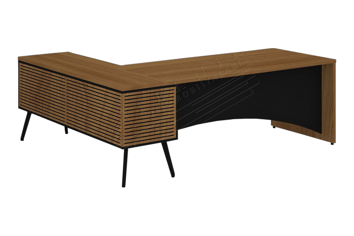 Fuerza Yönetici Masası, metal ayaklı sağlam yapısı ve özgün yatay çizgisel dekor detaylarıyla modern ofislerde güçlü bir duruş sağlar. Melamin yüzey, günlük ofis kullanımında dayanıklılık ve kolay temizlik sunarken etajerli yapısı evrak ve çalışma malzemelerinin düzenlenmesine yardımcı olur. Estetikği ve fonksiyonelliği birleştiren bu masa, yöneticiler için konforlu ve profesyonel bir çalışma alanı oluşturur.