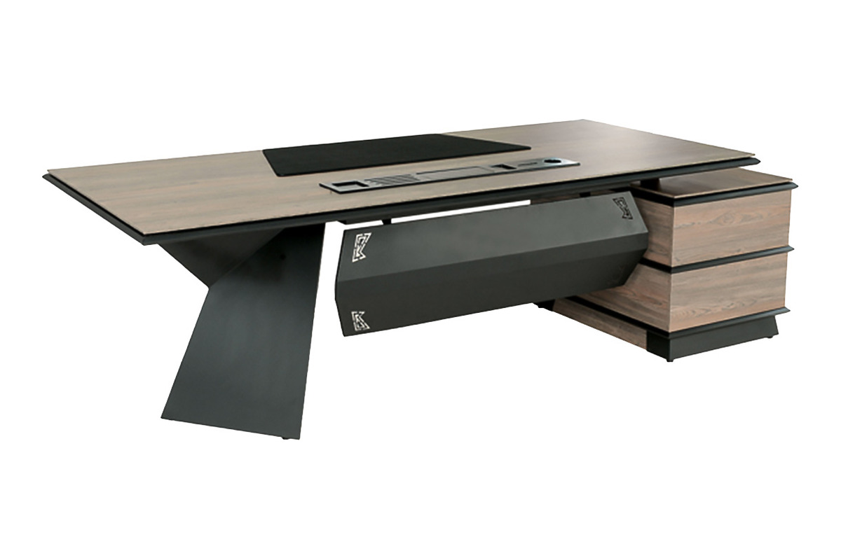 Geladegold Etajerli Yönetici Masası, modern ofislerin dinamik ihtiyaçlarına cevap veren, akıllıca tasarlanmış bir üründür. Etajerli yapısı sayesinde, çalışma alanınızda düzeni kolayca sağlayabilir, sık kullandığınız evrakları ve kişisel eşyaları elinizin altında tutabilirsiniz. Ahşap dokusunun verdiği sıcaklık, masaya zarif ve prestijli bir görünüm kazandırır. Bu etajerli büro masası, yöneticilere hem geniş bir çalışma alanı hem de sade ve lüks bir estetik sunar. Geladegold ofis masası, minimalist estetiğiyle dikkat çekerken, aynı zamanda güçlü bir duruş sergiler ve ofisinizin işlevselliğini artırır.
