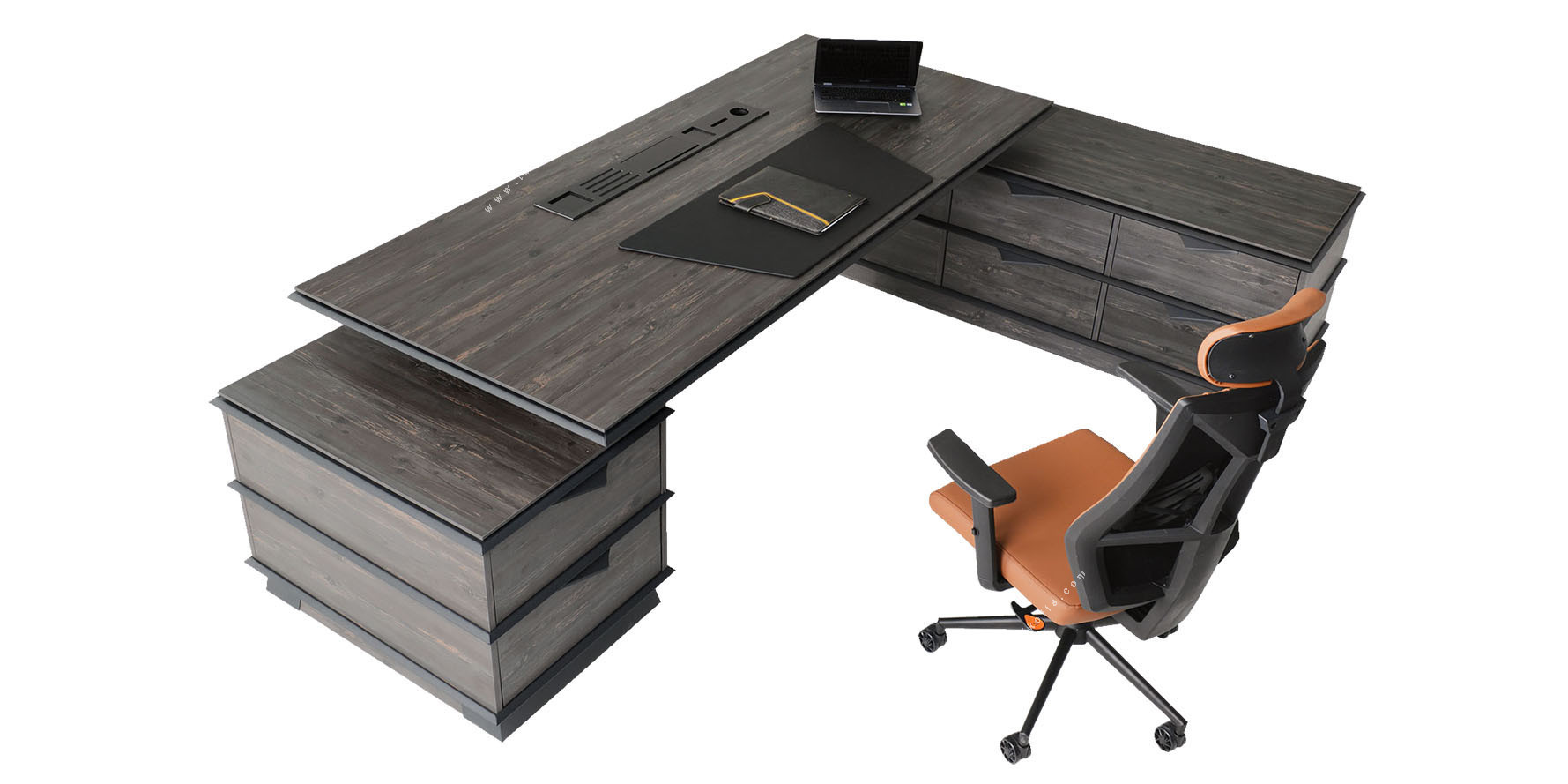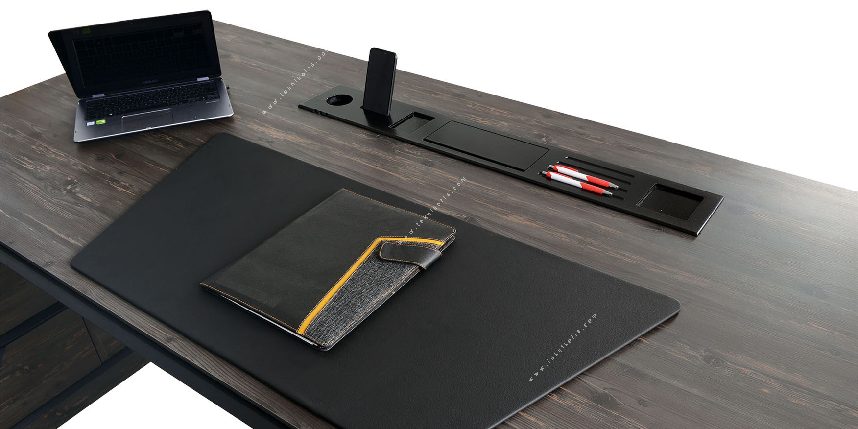 Geladenil Dekoratif Etajerli Yönetici Masası, yöneticiler için tasarlanmış estetik ve fonksiyonelliği bir araya getiren prestijli bir ofis mobilyasıdır. Masaya entegre etajeri, evrak ve ofis aksesuarları için düzenli bir kullanım alanı sunarken, masa tasarımına güçlü bir görsel denge kazandırır. Geniş masa tablası, yoğun iş temposunda konforlu bir çalışma alanı oluşturur. Modern çizgileriyle yönetici ofislerinde profesyonel ve etkileyici bir atmosfer yaratır.