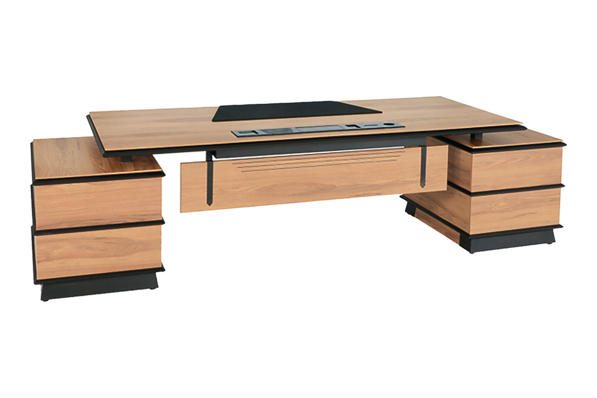 Geladezen Dekoratif Etajerli Makam Masası, ofisinizdeki yönetici odasına modern bir dokunuş ve düzenli bir çalışma ortamı kazandırmak üzere tasarlanmıştır. Geniş ve pürüzsüz çalışma yüzeyi, bilgisayar ve evraklar için bol alan sunarken, masaya entegre etajer ek depolama ve sergileme alanı sağlar. Masanın zarif ayakları ve kaliteli üst yüzeyi, dengeli, şık ve prestijli bir duruş sergilemesini sağlar. Sağlam yapısı ve kaliteli malzemeleriyle uzun ömürlü bir kullanım vaat eder. Geladezen makam masası, işlevselliği ve estetiği bir araya getirerek, verimli ve konforlu bir çalışma deneyimi sunar.