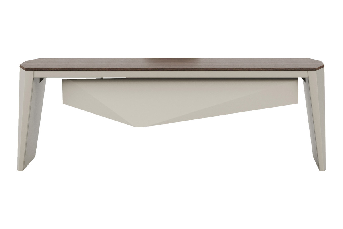 Gong Yönetici Masası,özel kesim detaylarıyla karakter kazanan modern formu, çalışma alanınıza estetik bir dokunuş sunar. Geniş masa tablası, konforlu bir çalışma deneyimi sağlarken metal ve ahşap uyumu mekana sofistike bir görünüm katar.