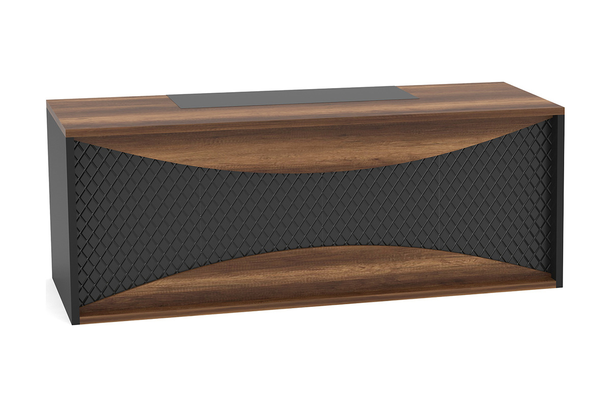 Great Yönetici Masası, melamin kaplamalı yüzeyi ve dekoratif karo desenli ön paneli ile yönetici odalarında zarif bir odak noktası oluşturur. Geniş çalışma tablası, günlük ofis gereçleri ve elektronik cihazlar için ferah bir kullanım alanı sağlar. Minimalist tasarımı, modern ofis dekorasyonlarına uyumlu, sade ama güçlü bir duruş sunar.