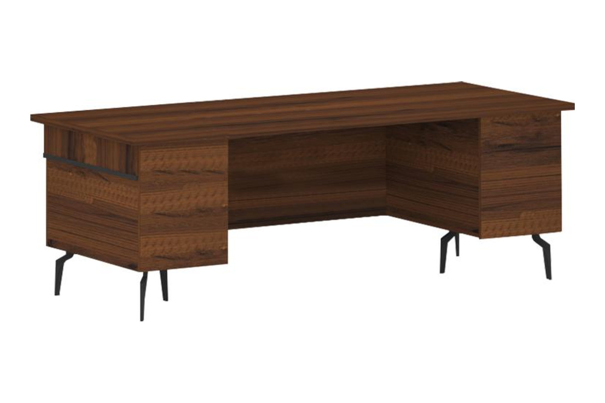Hermos Yönetici Masası, siyah boyalı metal ayakları ve yüzeyde kullanılan dekoratif metal detaylarıyla ofislerde modern bir duruş sergiler. Melamin geniş çalışma alanı, yoğun iş temposunda konforlu ve düzenli bir kullanım sunar.