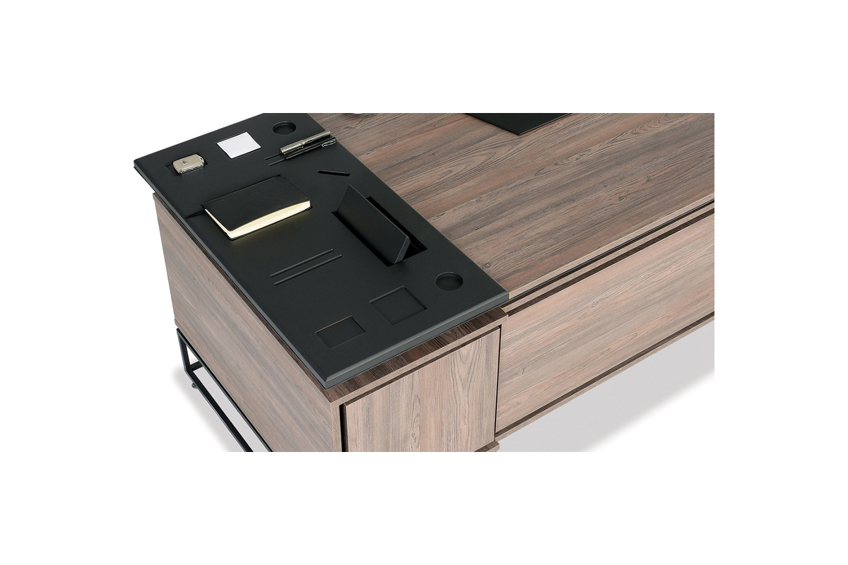 Yönetici odanızın merkezini oluşturacak ve profesyonel imajınızı güçlendirecek Laban Profil Metal Ayaklı Yönetici Masası, çağdaş tasarımıyla dikkat çekiyor. Metal profilli ayakları, masaya modern ve dinamik bir görünüm kazandırırken, sağlam yapısıyla uzun ömürlü kullanım vaat eder. Geniş ve ferah çalışma yüzeyi, en yoğun iş günlerinde bile size maksimum konfor ve düzen sağlar. Bu yönetici masası, modern yönetici masa takımınızın vazgeçilmez bir parçası olarak ofisinize prestijli bir atmosfer katar. Laban Makam Masası ile işlevselliği, estetiği ve dayanıklılığı bir arada deneyimleyin.