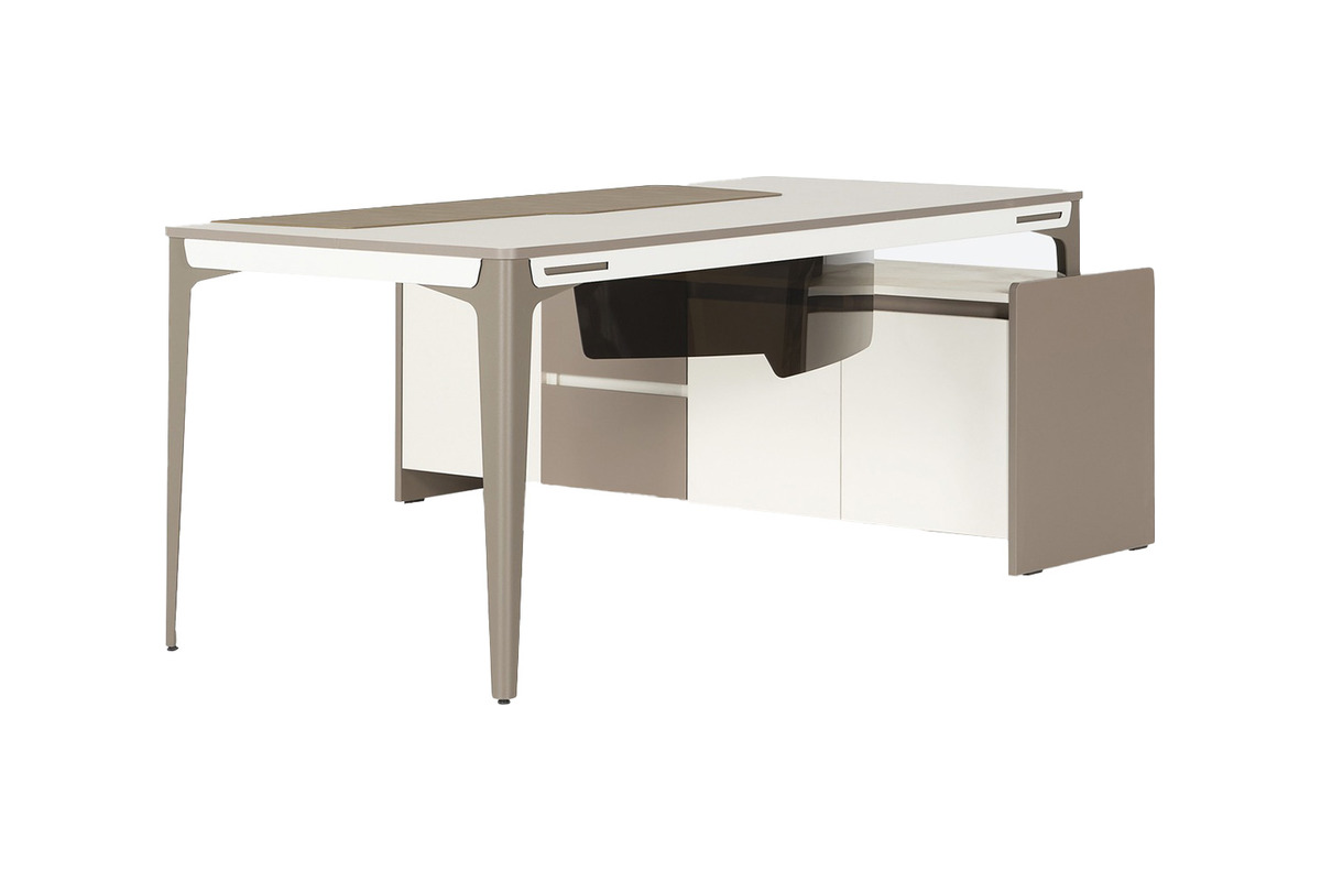 Etajerli tasarımı sayesinde, geniş çalışma yüzeyine ek olarak önemli belge ve eşyalarınız için kolay erişilebilir akılcı depolama çözümleri sunar. Açık ve kapalı bölmeleriyle düzenli bir çalışma ortamı sağlarken, dağınıklığı ortadan kaldırır. Lestonplus, yöneticiler için hem estetik hem de fonksiyonel bir deneyim sunarak, ofisinizin dinamizmini ve verimliliğini artırır. Bu masa, yönetici odası için masa takımınızın en dikkat çekici parçası olmaya adaydır.