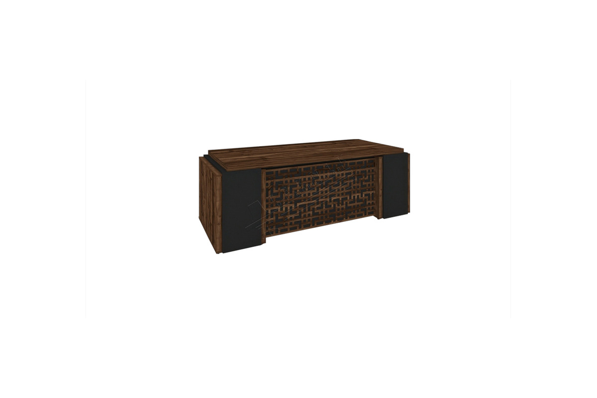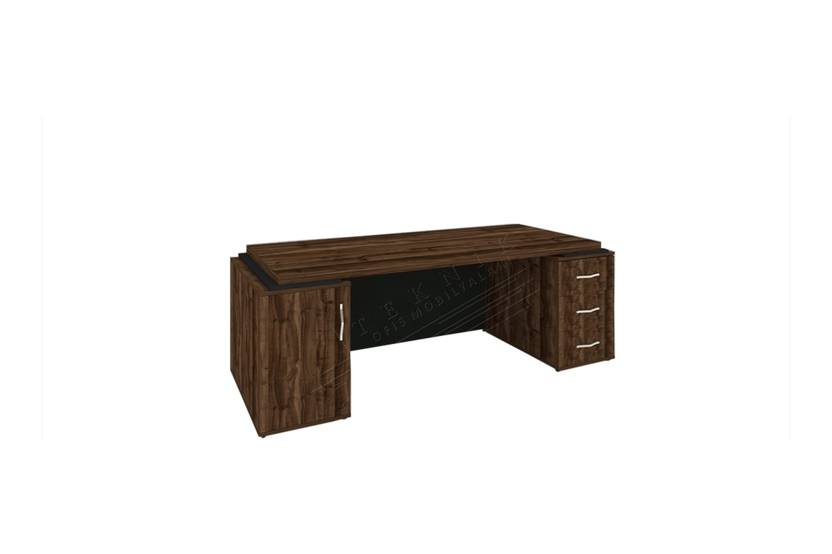 Lionne Yönetici Masası, sade formu ve ön yüzeyindeki dekoratif motifleriyle profesyonel ofis ortamlarına güçlü bir duruş kazandırır. Melamin yüzeyi sayesinde hem dayanıklı hem de yoğun ofis temposuna uygun bir kullanım sunar.