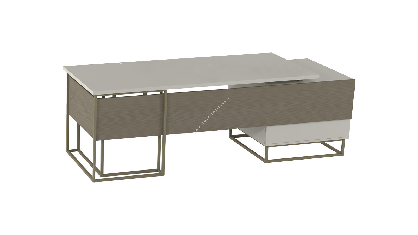 Meridian Yönetici Masası, geniş çalışma yüzeyi ve entegre kısa etajeriyle verimli bir çalışma ortamı sunar. Metal ayaklı sağlam yapısı, melamin yüzeyi ile birleşerek modern ofis dekorasyonuna uyumlu estetik bir görünüm sağlar. Etajerli bölmeler, evraklarınızı ve ofis malzemelerinizi düzenli şekilde saklamanıza yardımcı olur.