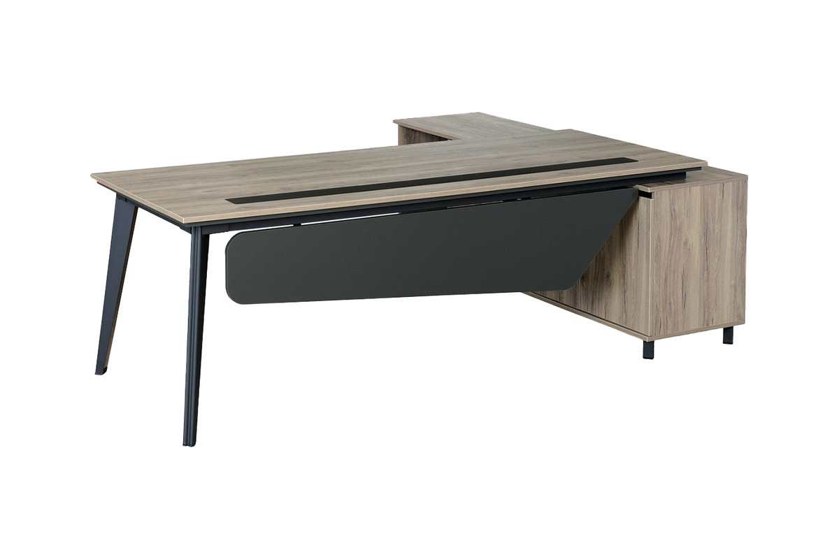Panawe Konsollu Yönetici Masası, modern ofislerin dinamik ihtiyaçlarına cevap veren, akıllıca tasarlanmış bir üründür. Konsol ünitesi, masanın genel yapısını tamamlayarak estetik bir bütünlük sağlarken, aynı zamanda düzenli bir depolama alanı sunar. Masanın temiz çizgileri ve sağlam ayak yapısı, uzun ömürlü bir kullanım vaat eder. Bu konsollu masa, yöneticilere hem geniş bir çalışma alanı hem de kişisel eşyalarını düzenli tutma imkanı sunar. Panawe yönetici masası, minimalist estetiğiyle dikkat çekerken, aynı zamanda güçlü bir duruş sergiler.