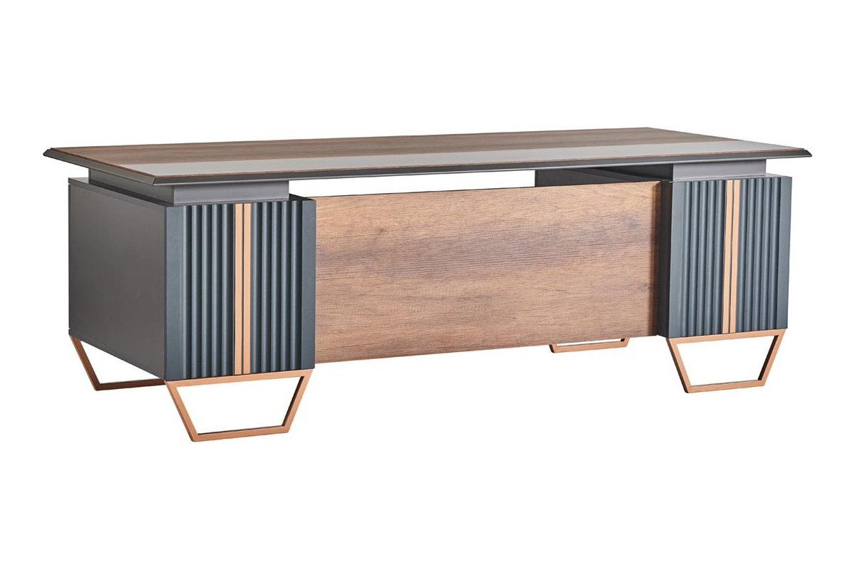 Strom Metalik Renkli Ayaklı Yönetici Masası, melamin yüzeyi ve öne çıkan metalik ayak detaylarıyla modern ofislerin yönetici odalarına güçlü bir karakter kazandırır. Geniş çalışma yüzeyi günlük ofis iş akışlarında konfor sağlar. Metal ayak yapısı dayanıklılığı artırırken modern dekorasyonlara uyumlu şık bir görünüm sunar. Yönetici ve ara yönetici ofisleri için prestijli ve fonksiyonel bir yönetici çalışma masasıdır.