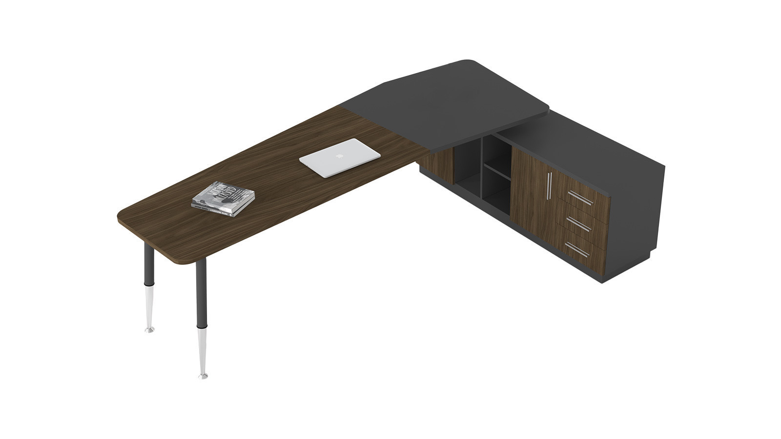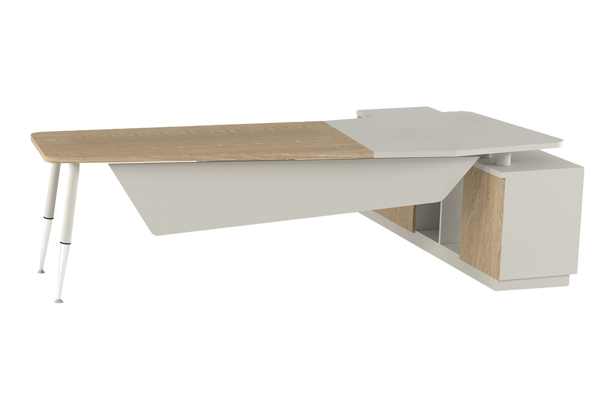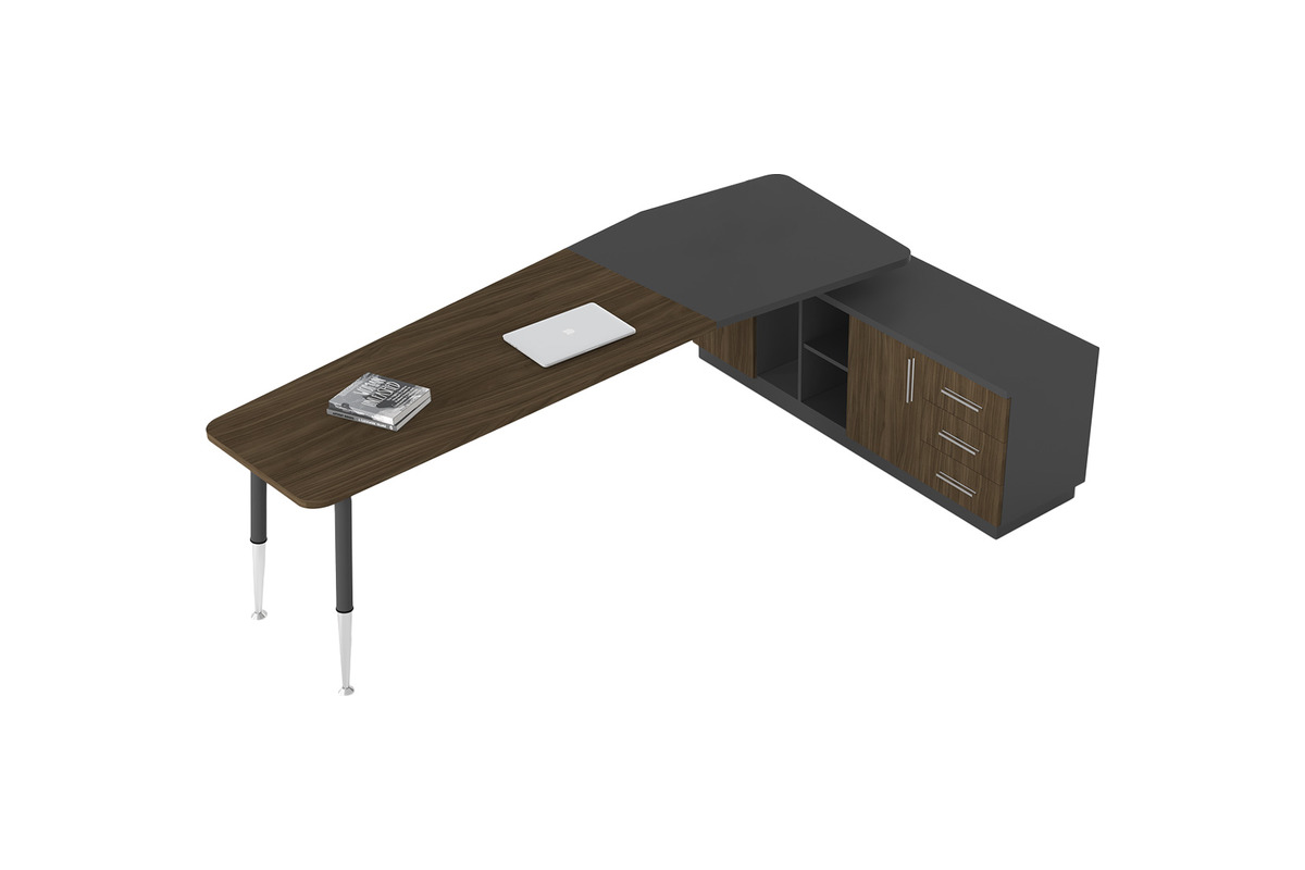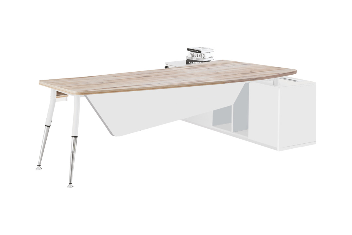 Touch Etajerli Yönetici Masası, geniş çalışma yüzeyi ve entegre etajer bölümüyle yönetici odalarında hem düzenli hem fonksiyonel bir çalışma alanı sunar.