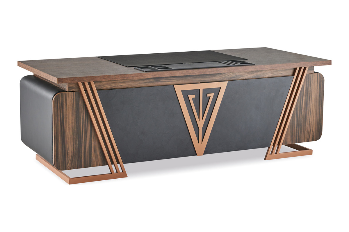 Tunç Şık Metal Ayaklı Yönetici Masası, modern ofis ve yönetici odaları için tasarlanmış prestijli bir yönetici masasıdır. Metal ayak detayları ofise güçlü ve çağdaş bir görünüm kazandırırken, geniş masa yüzeyi günlük iş akışında konforlu bir çalışma alanı sunar. Melamin yüzey yapısı uzun ömürlü kullanım sağlar ve ofis dekorasyonuna profesyonel bir estetik kazandırır. Modern ofis mobilyalarıyla uyumlu tasarımı, kurumsal alanlarda etkileyici bir ilk izlenim bırakır.