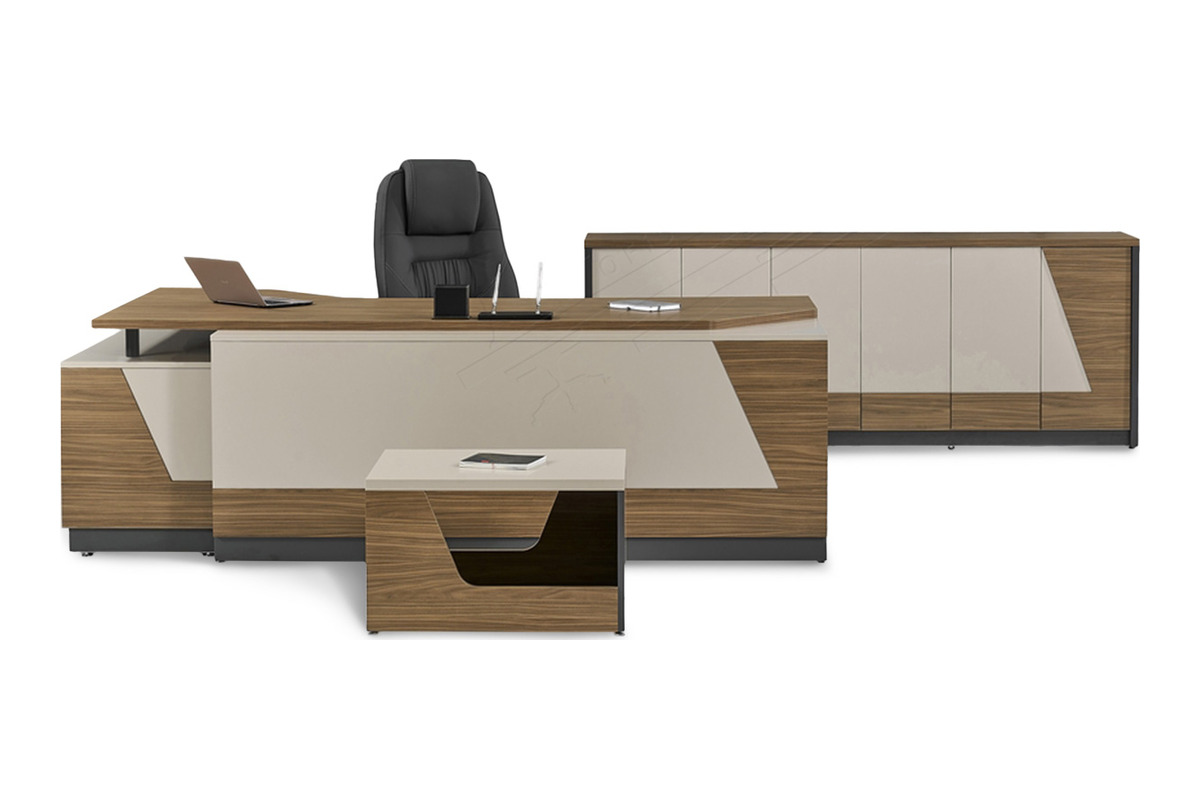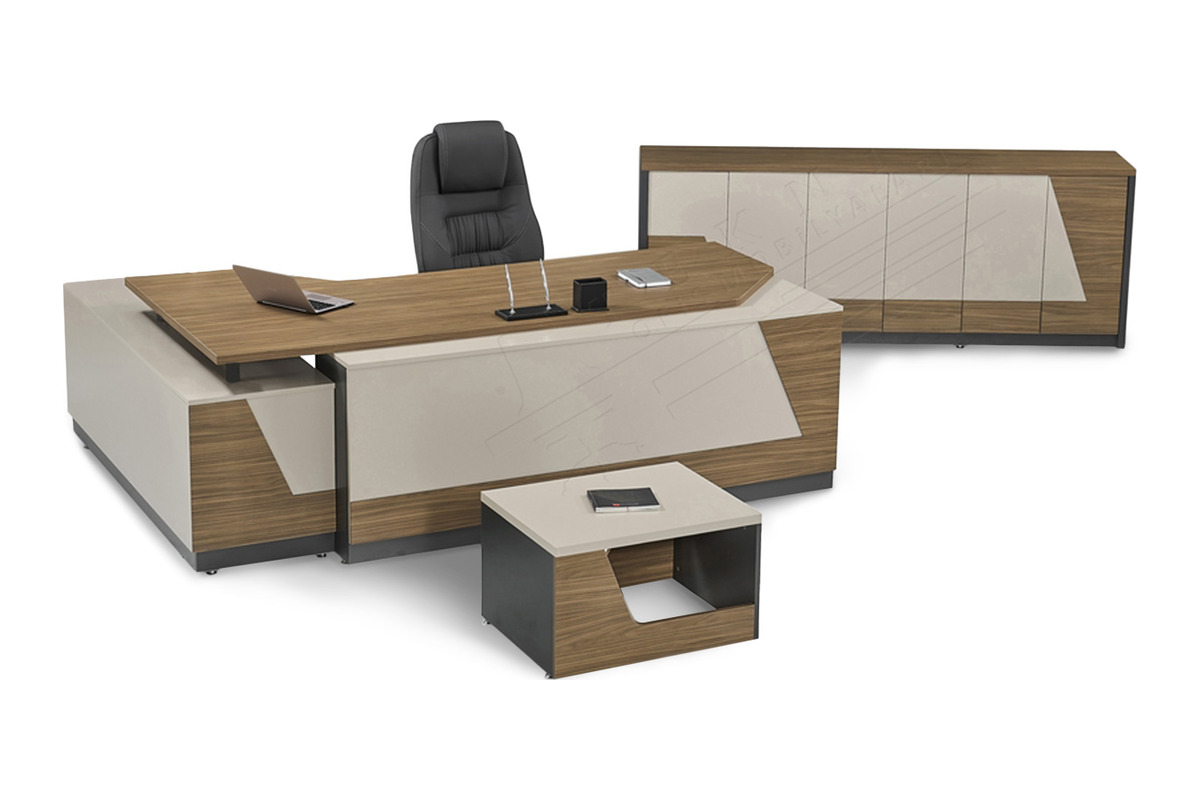 Arbor Yönetici Odası Takımı, etajerli masa, dolap ve sehpadan oluşan keskin hatlı ve özgün tasarımlı bir yönetici setidir. Modern çizgileri ve güçlü duruşu sayesinde yönetici ofislerine karakter kazandırır. Hem estetik hem fonksiyonel yapısıyla prestijli ve düzenli bir çalışma alanı oluşturur.