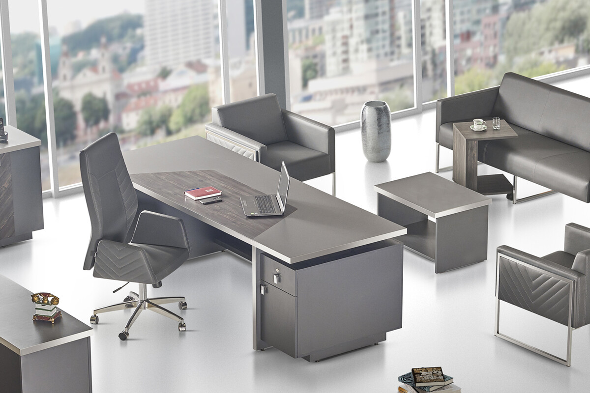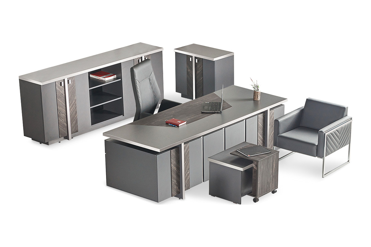 Blawer Modern Tasarım Yönetici Takımı, modern çizgileri ve estetik detaylarıyla ofisinize sofistike bir prestij ve çağdaş bir kimlik kazandırır. Takımın hakim antrasit tonları, mekanınıza profesyonel ve sakin bir atmosfer katar. Takımın net çizgileri ve modern yapısı, modern ofis mimarisine mükemmel bir uyum sağlar. Masa, dolap, etajer ve sehpanın birbiriyle olan ahenkli birlikteliği, ofisinizde görsel bir bütünlük ve denge oluşturur. Misafirleriniz üzerinde kalıcı bir ilk izlenim bırakmanızı sağlayan masa takımı, profesyonelliğinizi ve çağdaş zevkinizi yansıtan güçlü bir semboldür.