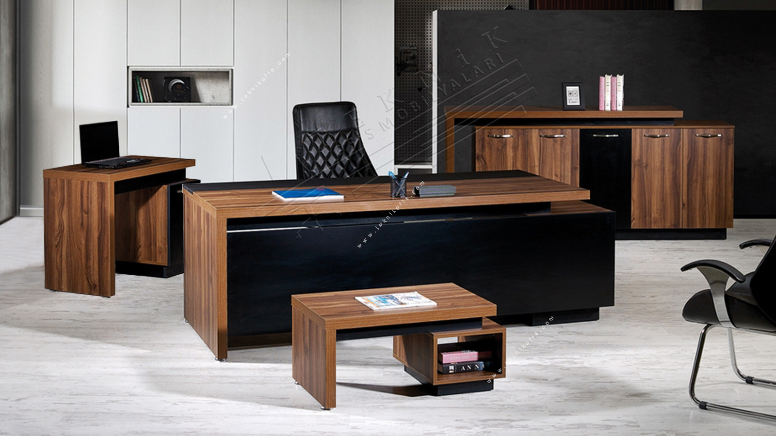 Bu şık yönetici odası takımı, ofisinizde görsel bir bütünlük ve profesyonel bir atmosfer yaratır. Hem işlevsellik hem de estetik açıdan üst düzey bir deneyim sunarak, çalışma alanınızı daha verimli ve şık hale getirir.
