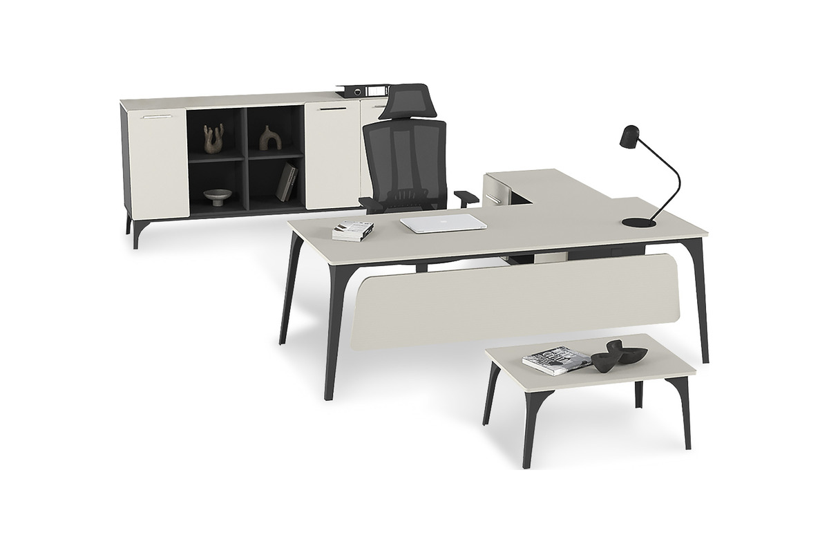Caliber Etajerli Masa Takımı, modern yönetici ofisleri için tasarlanmış, şık ve fonksiyonel bir çözümdür. Modern ve minimalist tasarımıyla ofisinize profesyonel bir hava katar. Yüksek kaliteli malzemelerden üretilmiş olup, uzun ömürlü kullanım için idealdir. Yoğun iş temponuzda, bu şık ve kullanışlı masa takımı verimliliğinizi artırmanıza yardımcı olacaktır.