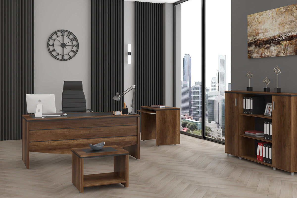 Convenient Ofis Takımı, klasik ve modern tasarım unsurlarını birleştirerek her ofise zamansız bir zarafet ve profesyonel bir atmosfer katıyor. Bu personel odası takımı, fonksiyonelliği ve estetiği birleştirerek, ofis çalışanları için ilham verici, konforlu ve prestijli bir çalışma ortamı yaratır.
