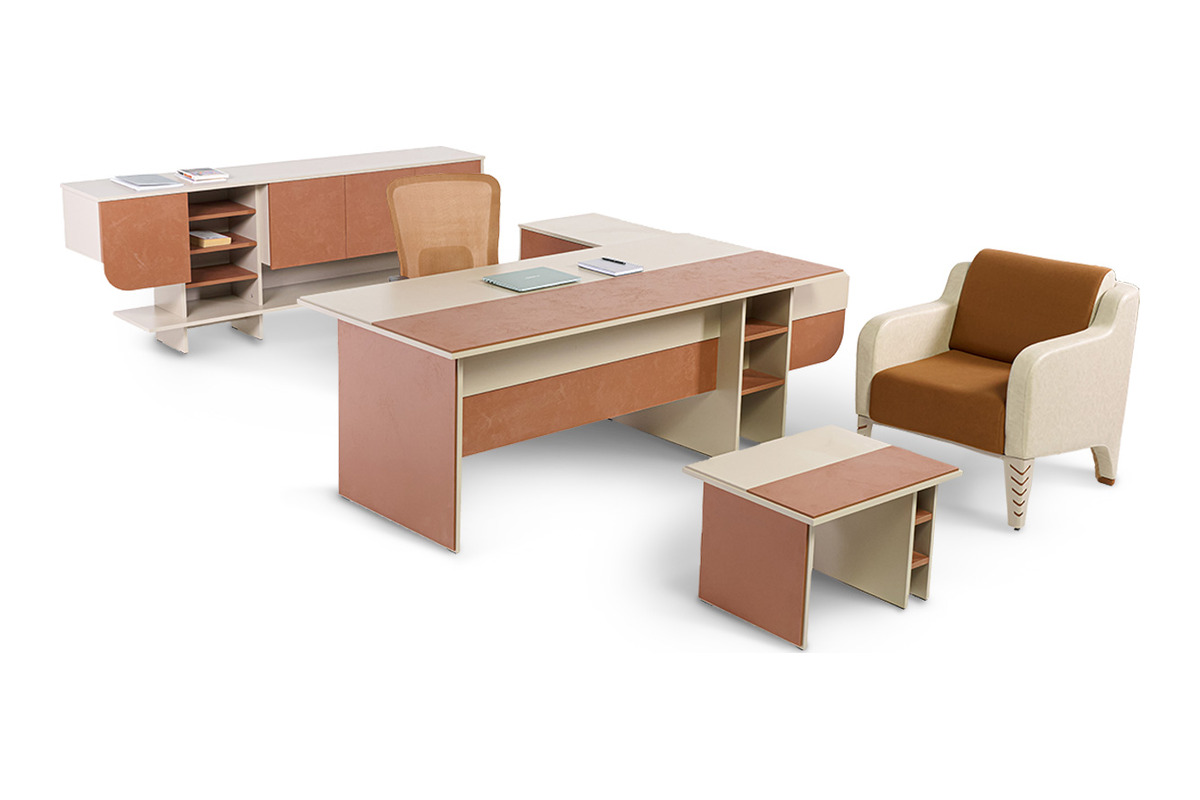 Dario Ofis Masa Takımı, etajerli masa, dolap ve sehpadan oluşan modern tasarımıyla ofislerinize şıklık ve düzen katar. Her parçanın üzerinde yer alan açık raf detayları, estetik bir dokunuş sunarken aynı zamanda fonksiyonel depolama alanı sağlar. Kurumsal ofislerde hem kullanım kolaylığı hem de görsel uyum sağlayan bu takım,yönetici odaları için ideal bir çözümdür.