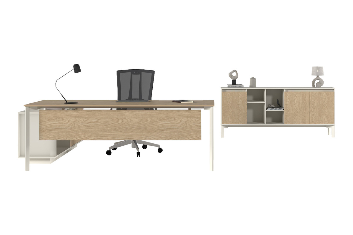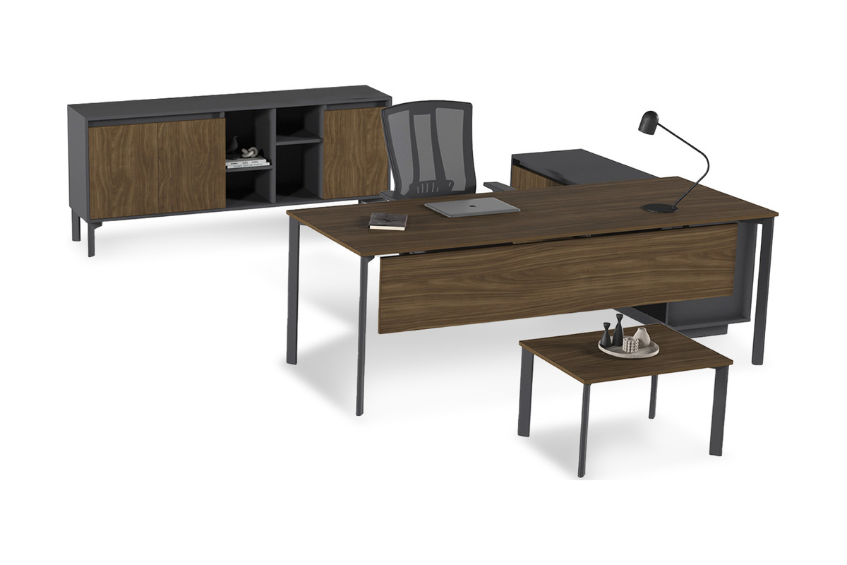 Eflorant Etajerli Yönetici Takımı, modern ofislerin depolama ve estetik beklentilerini karşılamak üzere özenle tasarlanmıştır. Takım, entegre etajerli bir yönetici masası, şık bir sehpa ve uyumlu bir yönetici dolabından oluşmaktadır. Etajerde ve dolapta bulunan açık ve kapalı bölmeler, evrakların ve ofis malzemelerinin düzenli bir şekilde saklanmasına olanak tanır. Bu sayede, çalışma alanınızda hem düzeni sağlar hem de şık bir görünüm sunar.