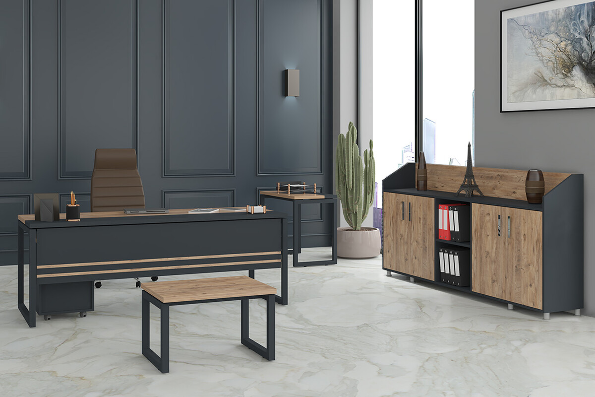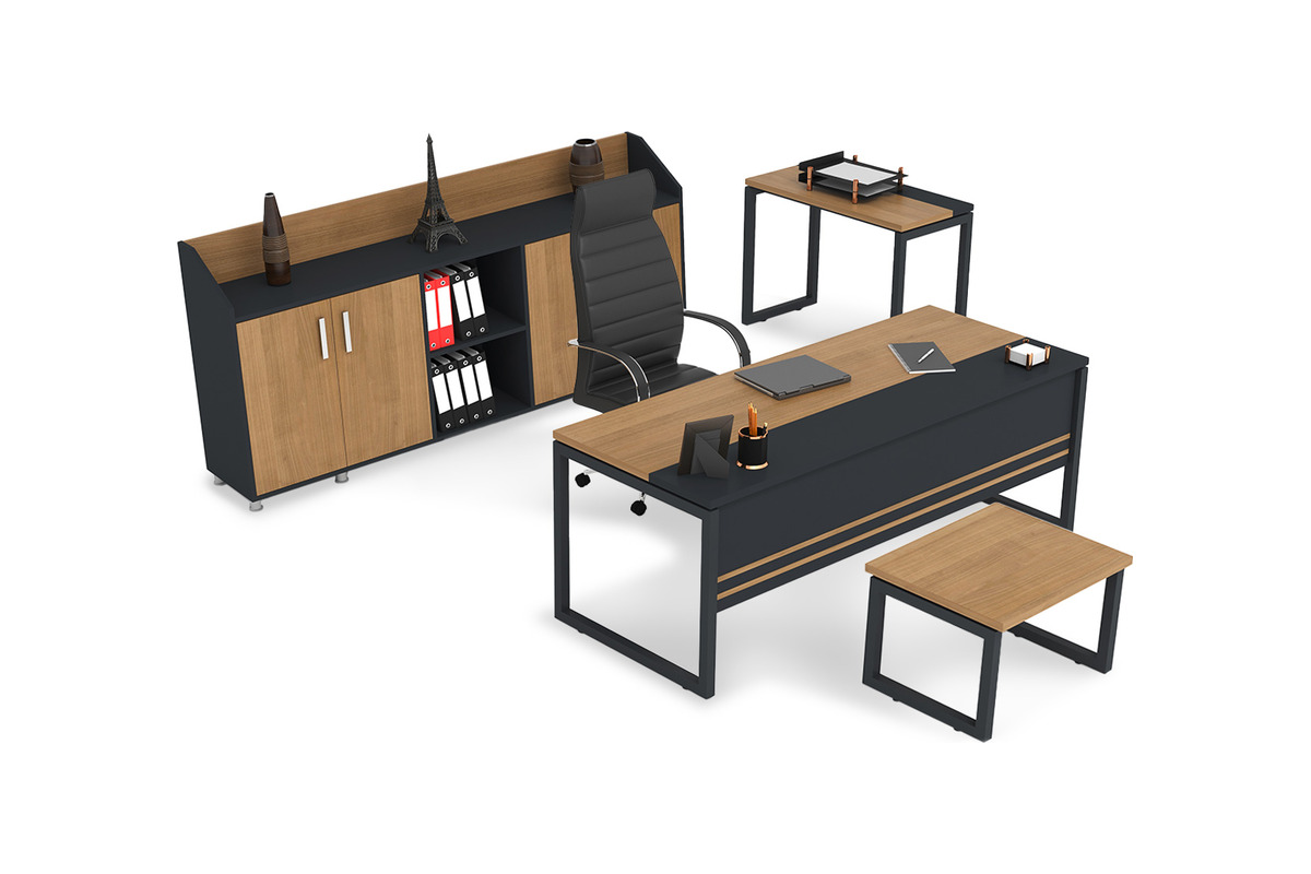 Extensive Yönetici Takımı, modern yönetici ofisleri için tasarlanmış, işlevselliği ve estetiği bir araya getiren kapsamlı bir mobilya setidir. Bu takım, ofisinizde profesyonel ve etkileyici bir atmosfer yaratmak üzere özenle tasarlanmıştır. Kaliteli malzemelerden üretilen yönetici odası takımı, dayanıklı yapısıyla uzun ömürlü bir kullanım vaat eder. Modern ve şık çizgileri, her türlü ofis dekorasyonuyla mükemmel bir uyum sağlayarak ortamın profesyonel imajını güçlendirir.