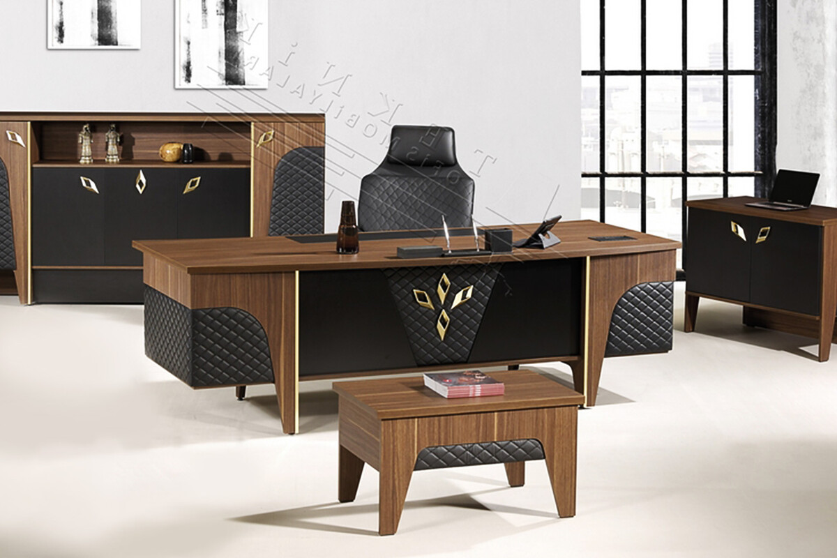 Furnish Sümenli Makam Takımı, modern yönetici ofisleri için özel olarak tasarlanmış, şıklığı ve üstün işlevselliği bir araya getiren kapsamlı bir mobilya setidir. Bu modern ofis mobilya takımının, ofisinizde prestijli, düzenli ve verimli bir çalışma atmosferi yaratmak üzere titizlikle üretilmiştir. Takımın ana unsurları geniş bir makam masası, geniş depolama alanı sunan bir dolap, ek depolama sunan bir etajer ve zarif bir sehpadan oluşur.