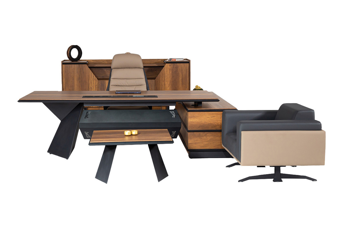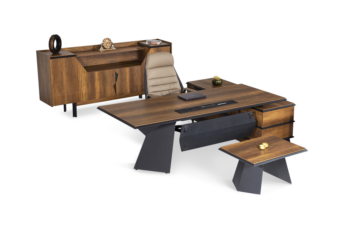Gelade Etajerli Ahşap Yönetici Takımı, modern ofislerin dinamik ihtiyaçlarına cevap veren, akıllıca tasarlanmış bir settir. Etajerli yapısı sayesinde, çalışma alanınızda düzeni kolayca sağlayabilir, sık kullandığınız evrakları ve kişisel eşyaları elinizin altında tutabilirsiniz. Bu etajerli yönetici takımı, yöneticilere hem geniş bir çalışma alanı hem de sade ve lüks bir estetik sunar. Gelade ofis takımı, minimalist estetiğiyle dikkat çekerken, aynı zamanda güçlü bir duruş sergiler ve ofisinizin işlevselliğini artırır.