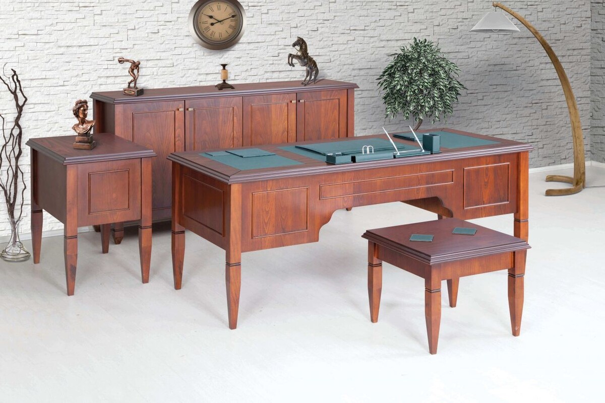 Modern ve çağdaş bir zaman içerisinde de yaşasak bazı alışkanlıklarımızdan kolay kolay vazgeçemiyoruz. Çoğu insanın klasik ve eskinin esintilerini kendinden alamıyor. Bu yüzden klasikliğin izlerini her yerde yaşamak istiyor. Granj ceviz makam takımı da bu söylediğimiz kavrama bire bir uyuşan takım olmaktadır. Klasiği ceviz işlemeli kalitesiyle iyi vurgulamaktadır. Yönetici odalarına uygun olduğu gibi aynı zamanda resmi kurumlarımızdaki değerli büyüklerimizin makamlarına da uygun mobilya takımıdır. Kaymakamlıklar, valilikler veya vekil makamlarında kullanılabilir. Makam mobilya grubumuz taşıdığı çizgilerle siz değerli yöneticiler veya iş adamlarına yakışır şekilde gereken ağırlık ve ciddiyeti makamda sağlayacaktır. Özel üretim deriyle iyi bir kombin yakalanmış olan mobilya setinde makama, mekana veya isteğe özel her türlü özelleştirme yapılabilir.