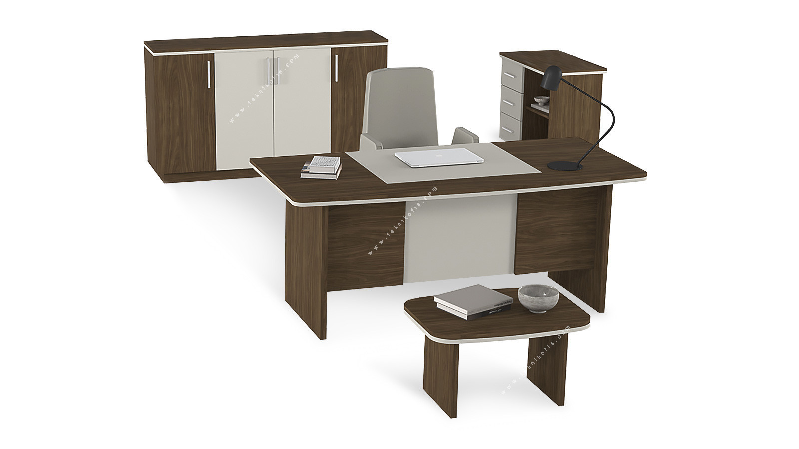 Yüksek kaliteli malzemelerden üretilen ofis mobilyası takımı, dayanıklı yapısıyla uzun ömürlü bir kullanım vaat eder. Doğal ve şık çizgileri, her türlü ofis dekorasyonuyla mükemmel bir uyum sağlayarak ortamın profesyonel imajını güçlendirir.