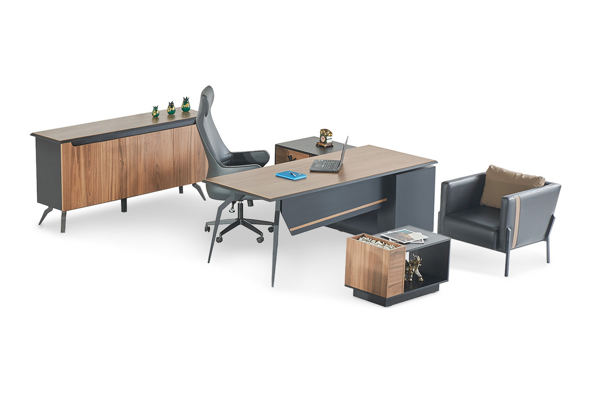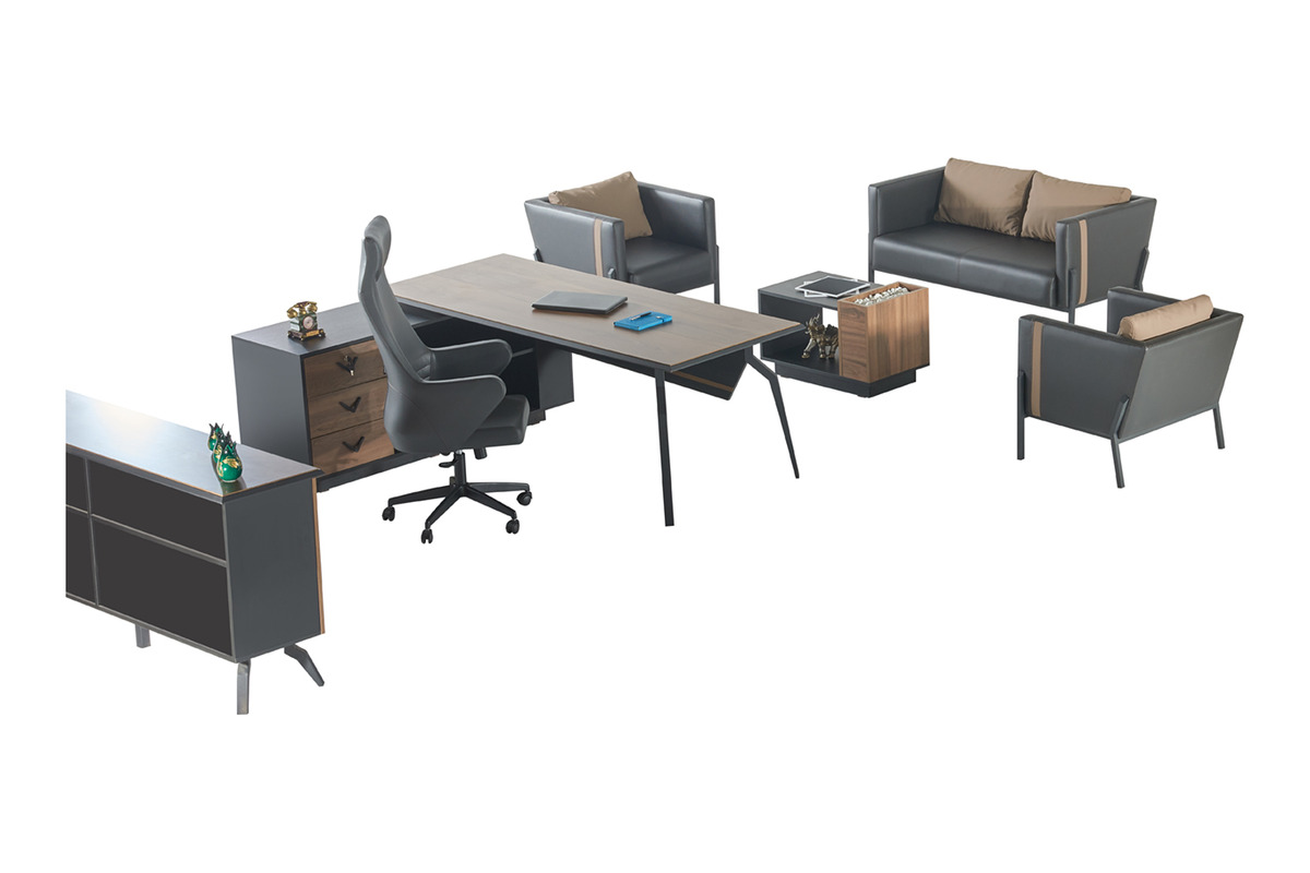 Bu yönetici ofis takımı, ahşap dolap ve sehpa gibi tamamlayıcı parçalarla eksiksiz bir çözüm sunar. Helina, hem günlük iş akışınız için pratik çözümler sunar hem de ofisinizin genel atmosferini yükselterek, yüksek profilli ofis takımı beklentilerini karşılar. Her detayıyla yöneticilik duruşunuzu pekiştiren bu takım, uzun yıllar kullanıma uygun kalitede üretilmiştir.