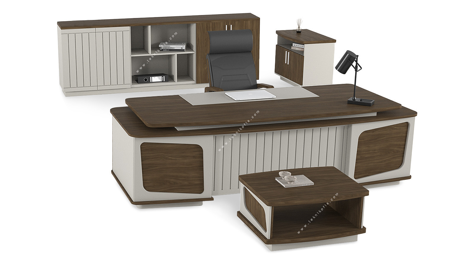 Bu yönetici odası takımı, günlük ofis kullanımının getirdiği yoğunluğa dayanacak şekilde yüksek kaliteli ahşap malzemelerden üretilmiştir. Ürünün sağlam yapısı, uzun yıllar boyunca formunu ve işlevselliğini korumasını garantiler. Hem pratik hem de estetik bir ofis çözümü sunar.