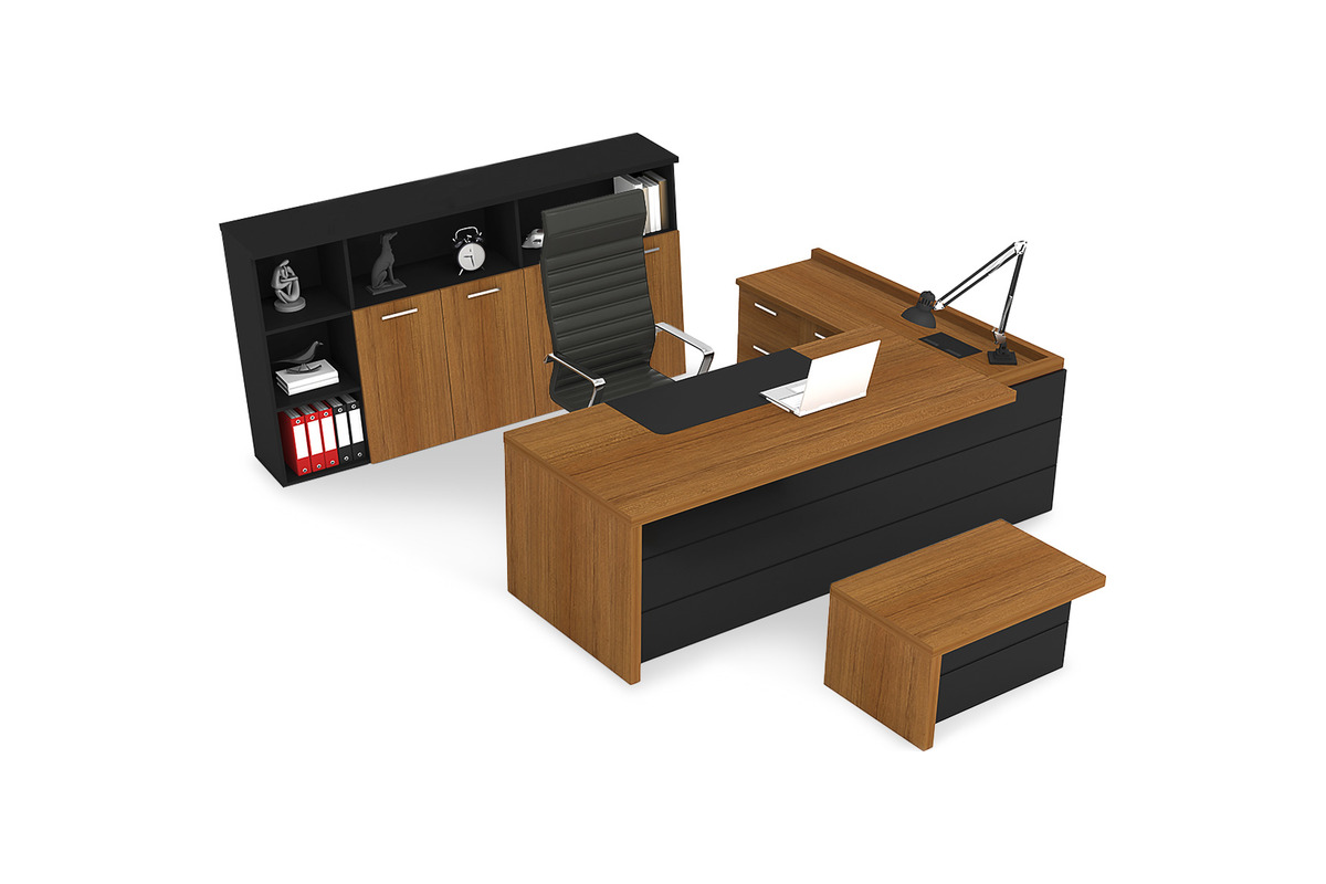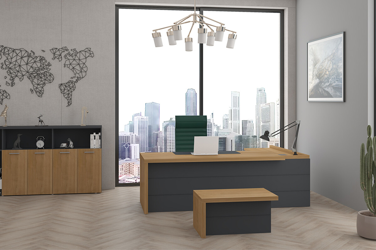 Laker Etajerli Yönetici Takımı, yöneticilerin yoğun çalışma temposunu desteklemek ve ofis düzenini sağlamak üzere tasarlanmış, işlevselliği ön planda tutan kapsamlı bir mobilya grubudur. Takımın geniş çalışma masası, dizüstü bilgisayar, evraklar ve ofis aksesuarları için bolca alan sunarak verimli bir çalışma ortamı sağlar. Masanın entegre etajeri, önemli belgelerin ve kişisel eşyaların düzenli bir şekilde saklanmasına olanak tanır, böylece çalışma yüzeyindeki dağınıklık minimize edilir.