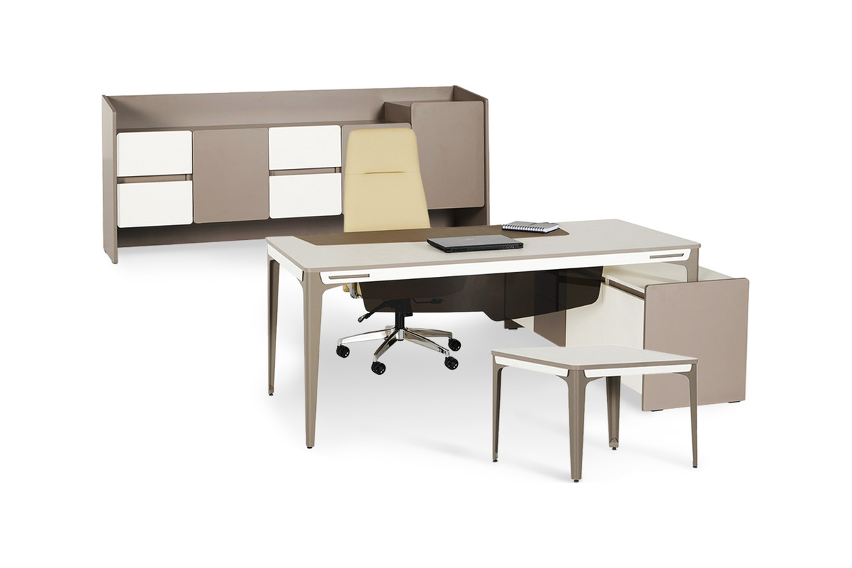 Yönetici ofisinizin prestijini ve ruhunu yansıtan Lestonplus Ahşap Yönetici Takımı ile tanışın. Takımın geniş çalışma masası, hem konforlu bir çalışma alanı sunuyor hem de entegre etajeri ile karmaşayı ortadan kaldırıyor. İşlevsel dolap ünitesi, kapalı ve açık bölmeleriyle akılcı depolama çözümleri sunarak, ofisinizin her zaman düzenli kalmasını sağlar. Bu ofis masası takımı, estetik görünümüyle ofisinize değer katarken, yöneticiler için verimli ve ilham veren bir çalışma ortamı yaratır.
